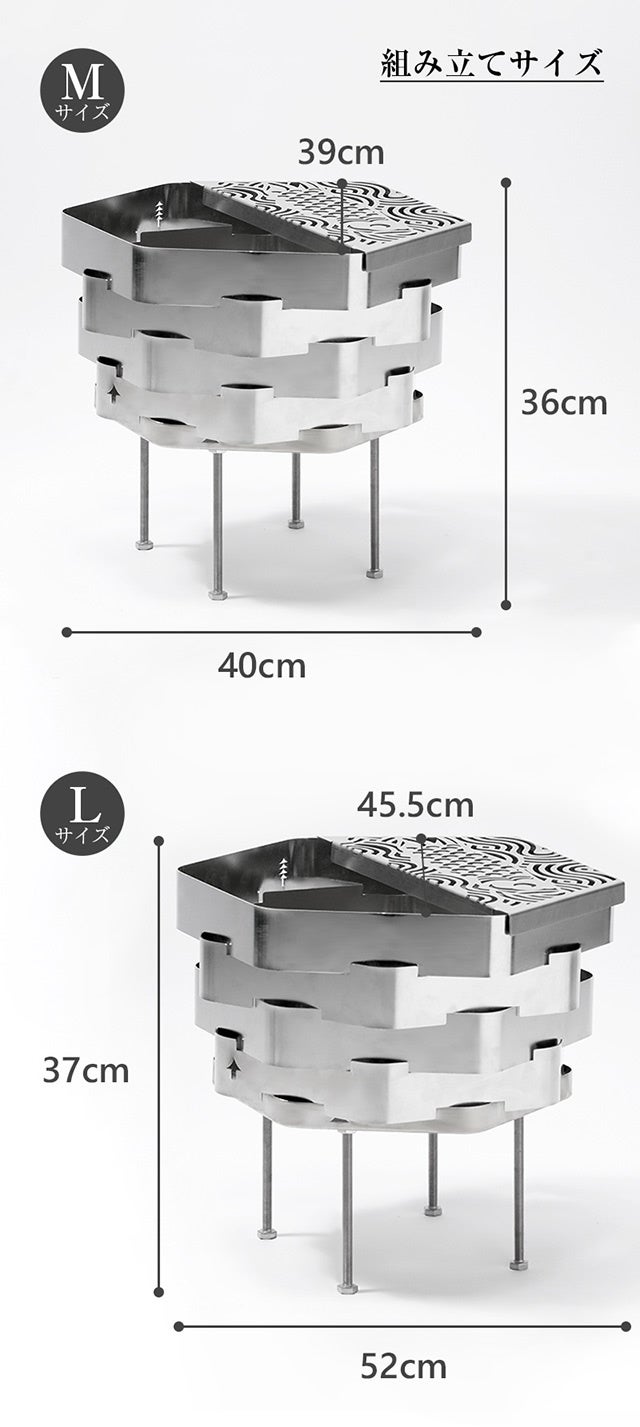 焚き火台/ステンレス/焼き網付き/六角形/簡単組み立て