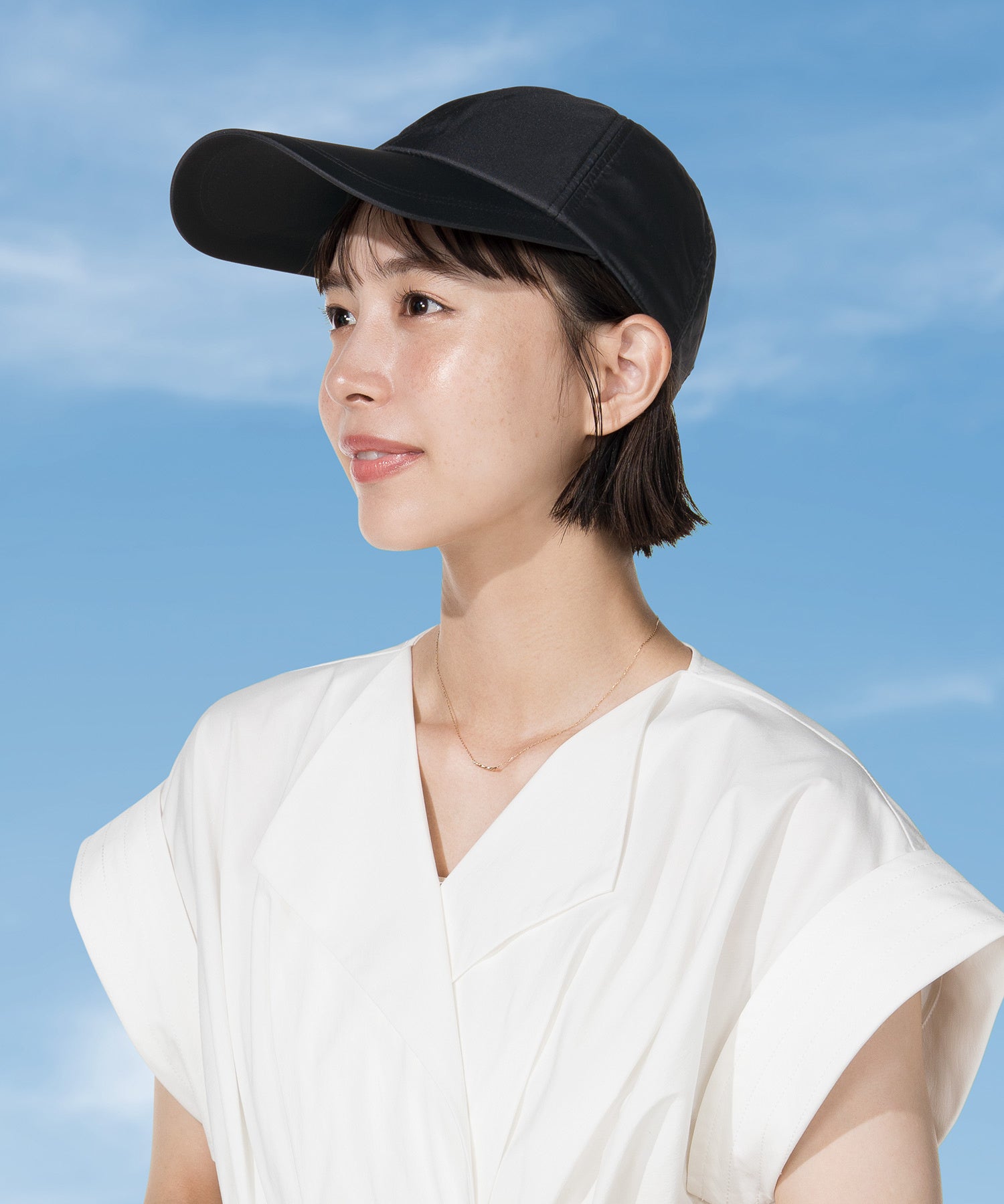 UVOの完全遮光100%※3&UVカット率100%※4生地を使用したハットは、大きなつばが顔周りをしっかりガード。つばの後ろは12cmと長めの仕様で、日焼けしやすい首元も守ります。