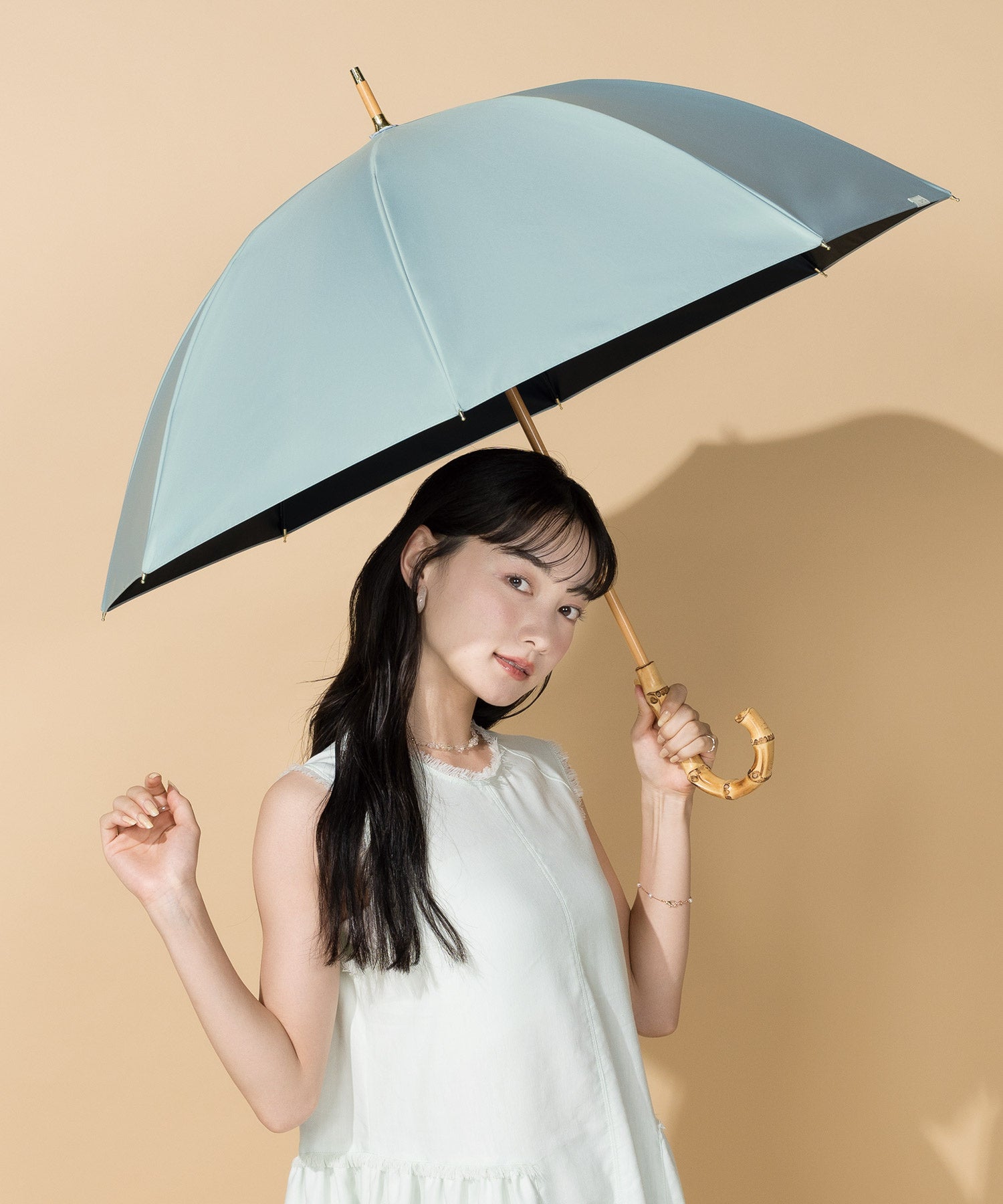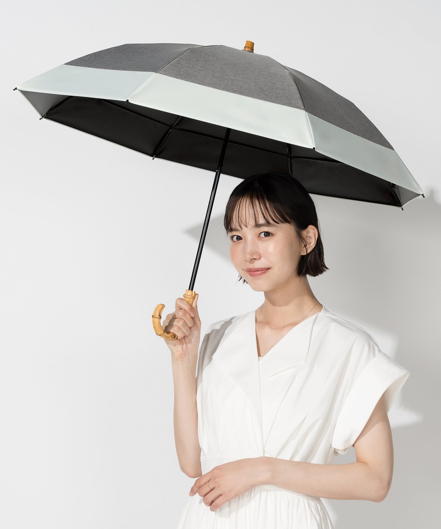 自然をイメージした上品で優しいカラー展開が特徴のCALMシリーズから、親骨60cmの2wayタイプが仲間入り。バンブー素材のストレートな持ち手は握りやすく、この型だけの特別仕様です。