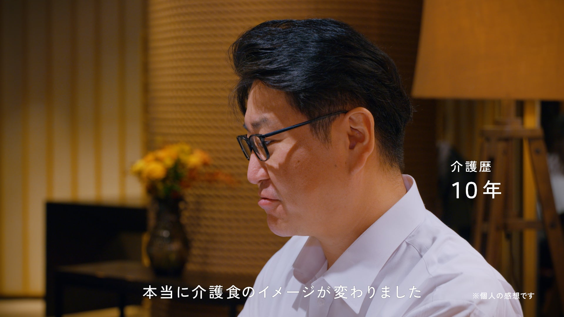 動画広告「まんぷくレストラン篇」では、介護食に対する先入観を覆す“ある仕掛け”を通じて、介護する人・される人双方の心を動かすストーリーが展開されます。大切な家族が食べるものだからこそ、介護する人が本当においしいと思える食事を提供したい、という想いを表現しています。視聴者が「まんぷく日和」のおいしさと想いに触れることで、介護食のイメージが大きく変わるきっかけとなることを目指します。