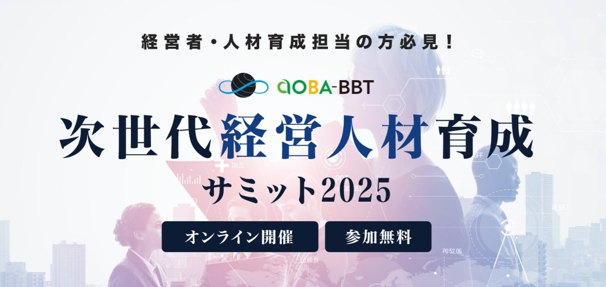 株式会社Aoba-BBT(本社:東京都千代田区、代表取締役社長:柴田 巌、以下「Aoba-BBT」)は、経営と人材育成の本質を探究するオンラインイベント「Aoba-BBT 次世代経営人材育成サミット 2025」を開催いたします。