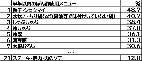 また、かおりの蔵や味ぽん+大根おろし、味ぽん+わさびのつけだれも上位にランクインし健闘!味ぽんだけに限らない楽しみ方もできそうです。