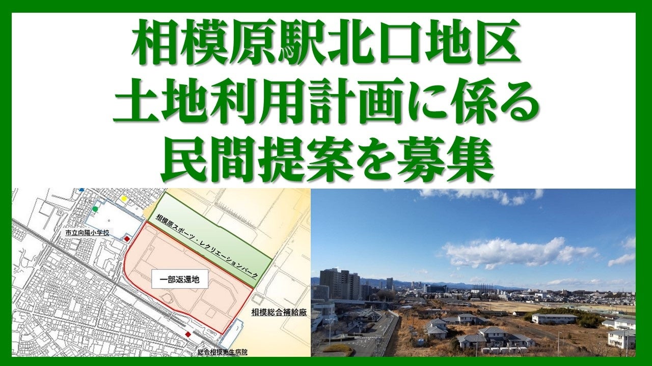 現在相模原市では、具体的な導入施設やその規模等を定める相模原駅北口地区土地利用計画の策定に向けて検討を進めており、この検討を進めていくうえで、民間活力を最大限に活かした土地利用を行うことを前提として、民間事業者提案を募集します。