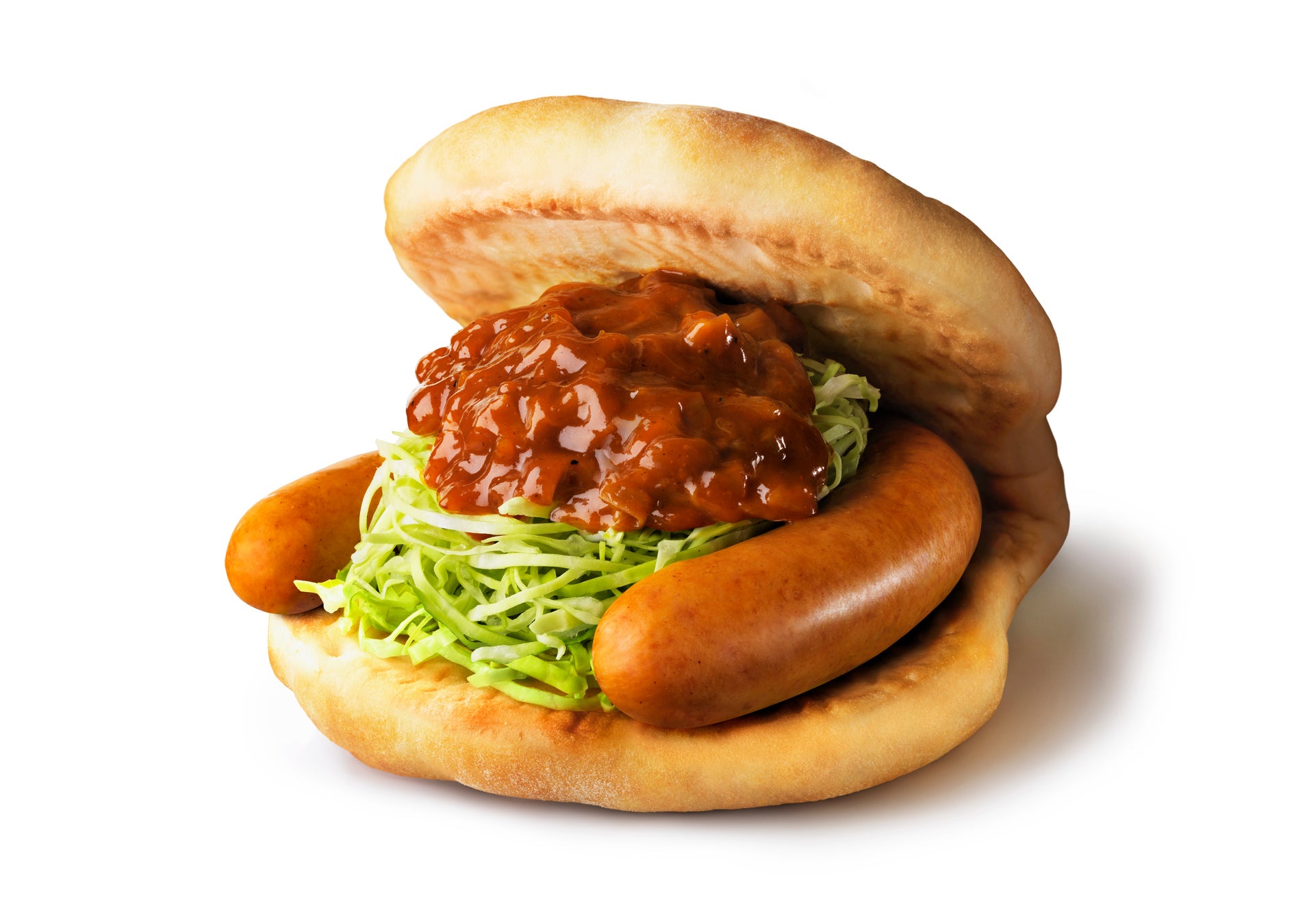 ジューシーでパリッとした歯ごたえのあるソーセージにモスオリジナルのバーベキューソースをかけ、ふんわりとしたフォカッチャでサンドしました。フォカッチャの生地は、歯切れ良くふんわりとした食感を出し、さらに、塩麴を入れることでしっとりとした焼き上がりにしています。バーベキューソースは、キャベツや素揚げしたなすなどを具材にし、ヒッコリーの木を燻したような香りを加えた、モスオリジナルのソースです。