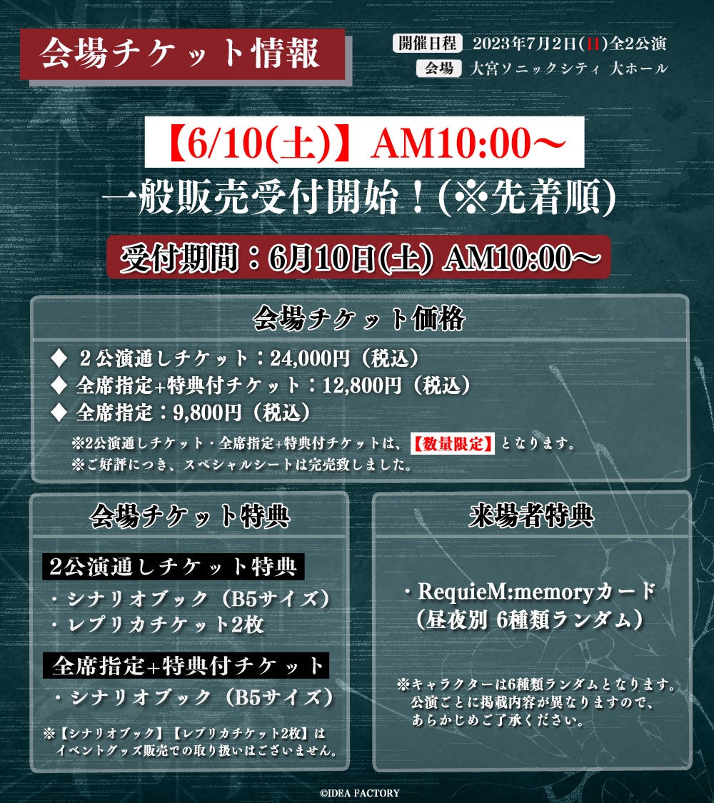 来場者限定特典として「RequieM:memoryカード(昼夜別 6種類)」を
