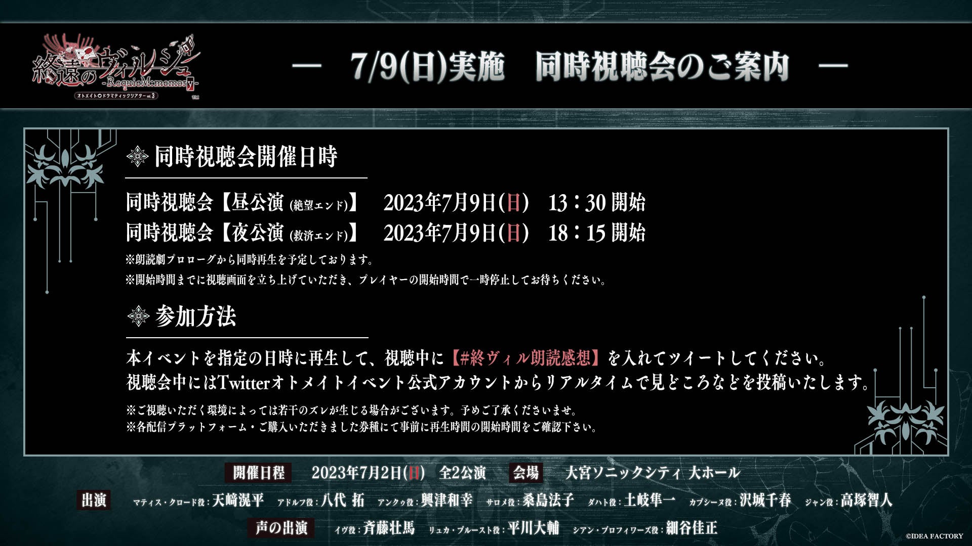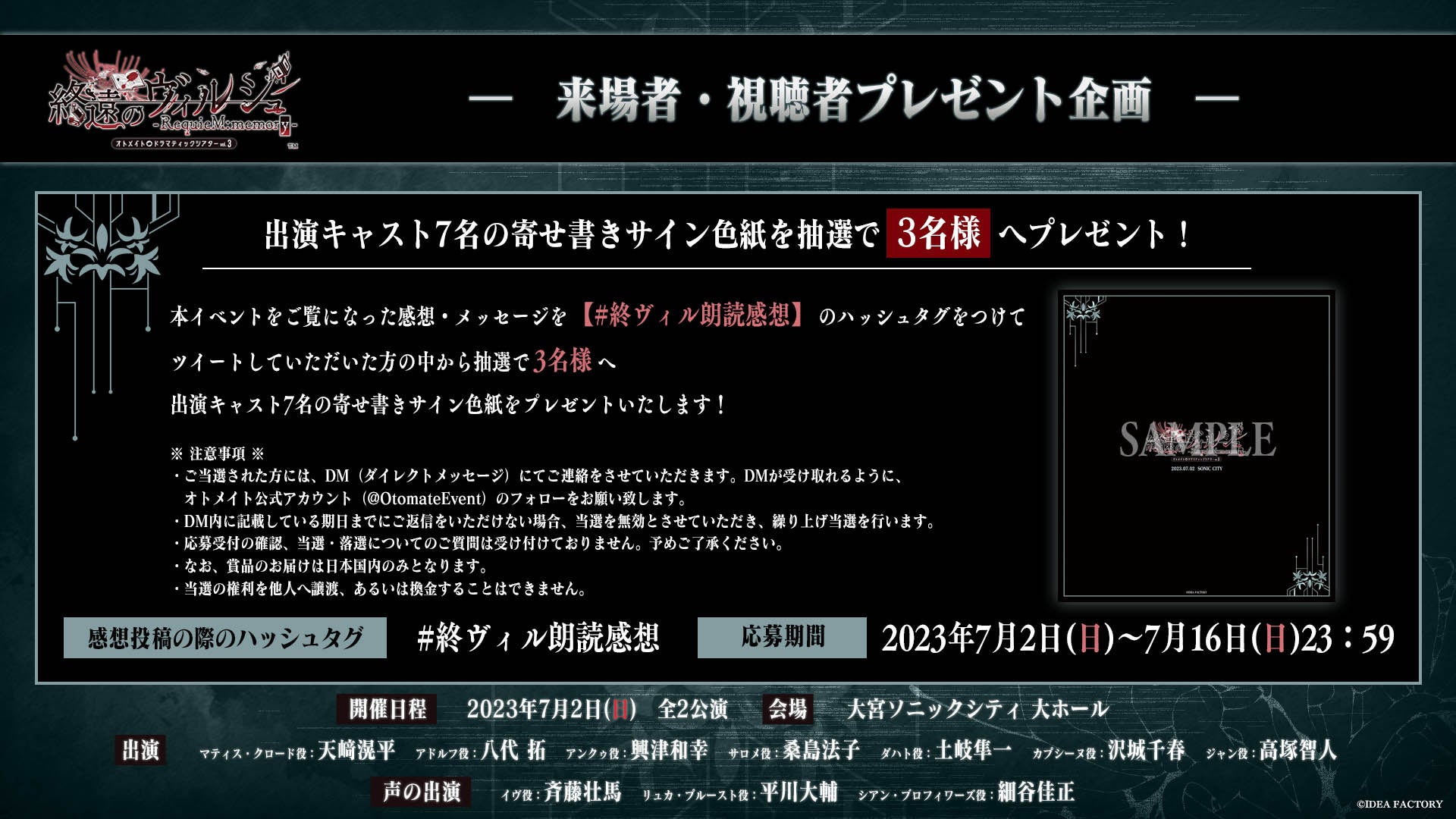 オトメイトが贈る朗読イベントシリーズ第3弾「終遠のヴィルシュ」イベント物販商品ラインナップを公開&会場チケットの一般販売は今週末【6/10(土)AM10:00~】開始!