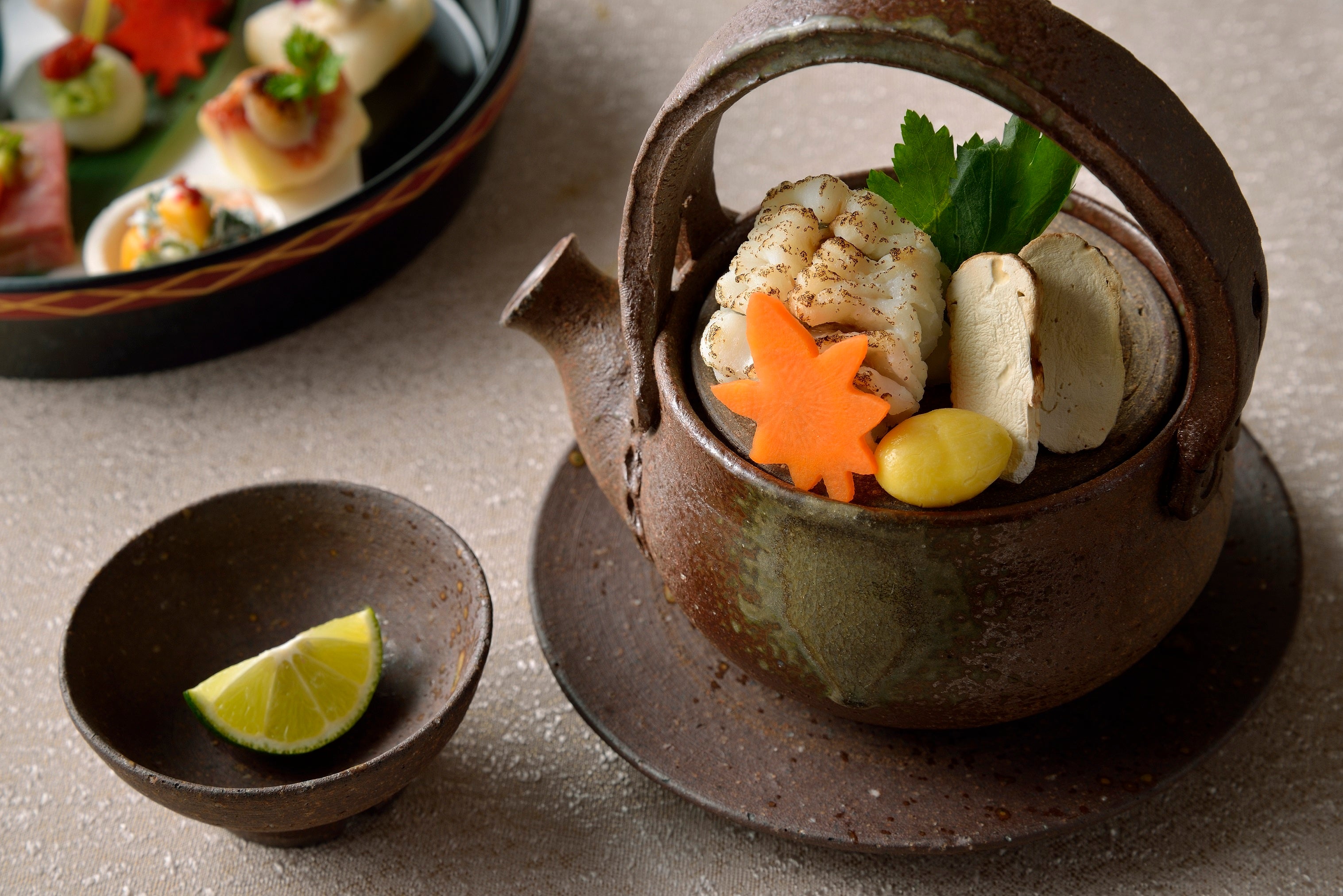 また、料亭ならではのメニューとして、松茸や銀杏が入った土瓶蒸し、押し寿司3種もご用意しております。