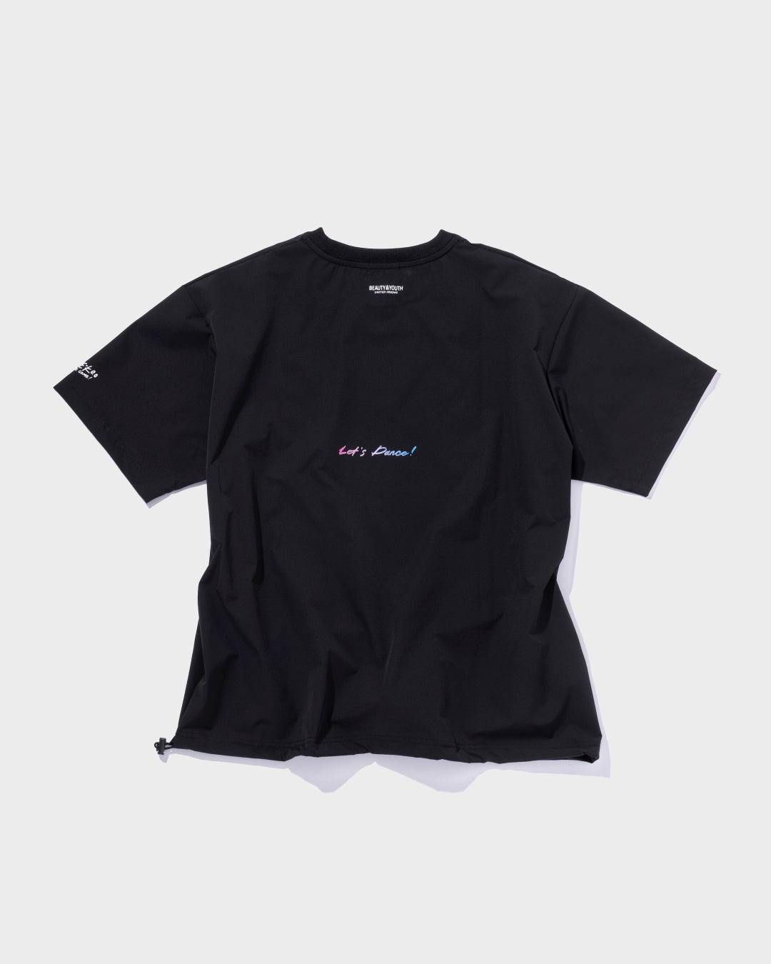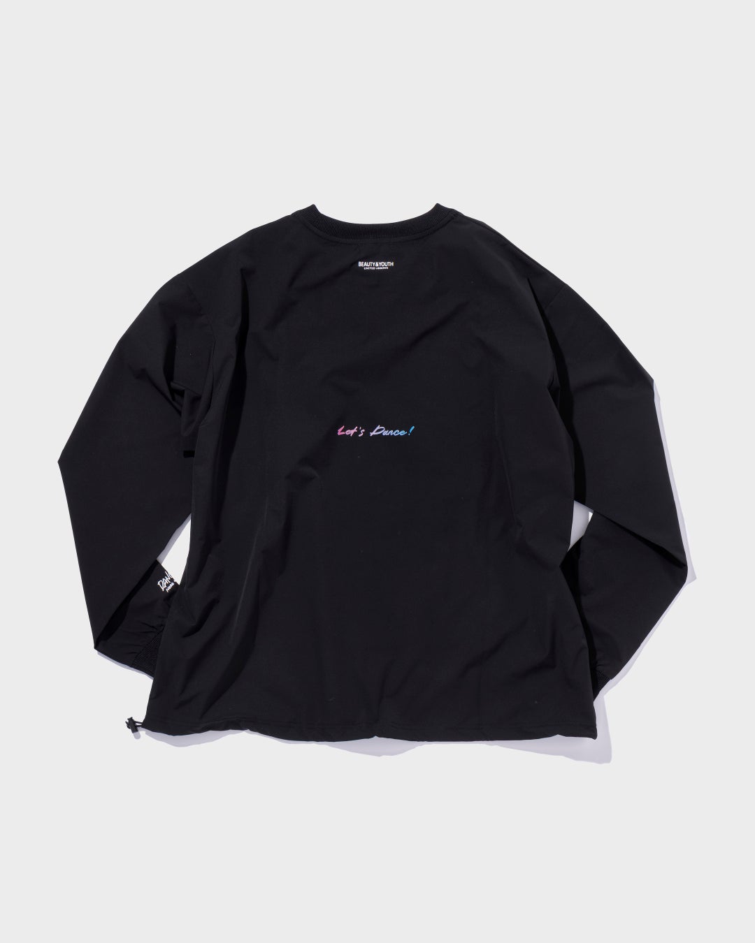 Tシャツ、ロングスリーブTシャツのデザインは、胸に「DANCE-K」のプリント、背中には「Let’s Dance!」のメッセージをD.LEAGUEの会場演出のひとつでもあるライティングをイメージしたグラデーションカラーでプリントしました。裾を絞ってバルーンシルエットのように楽しむことも可能です。
