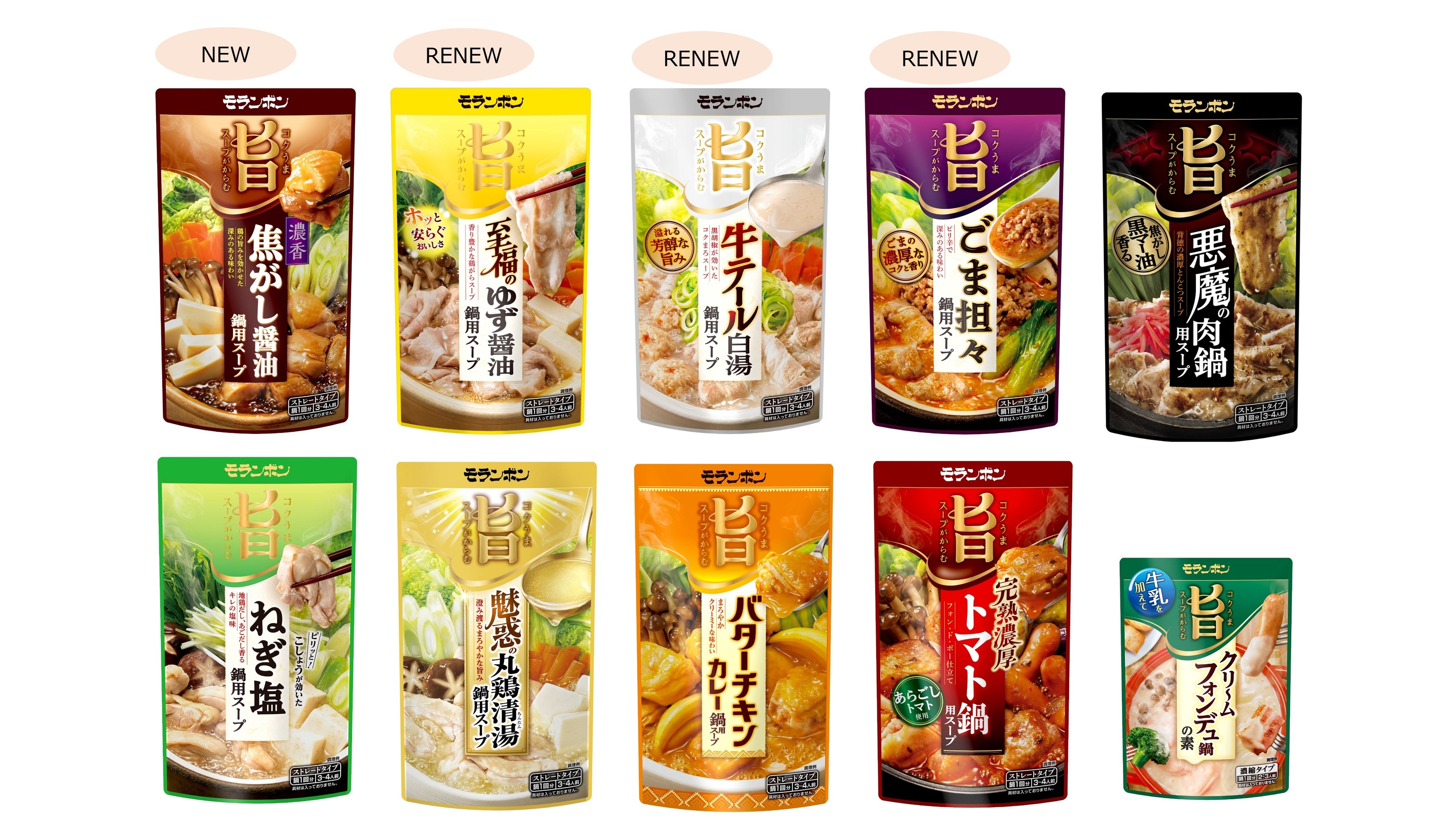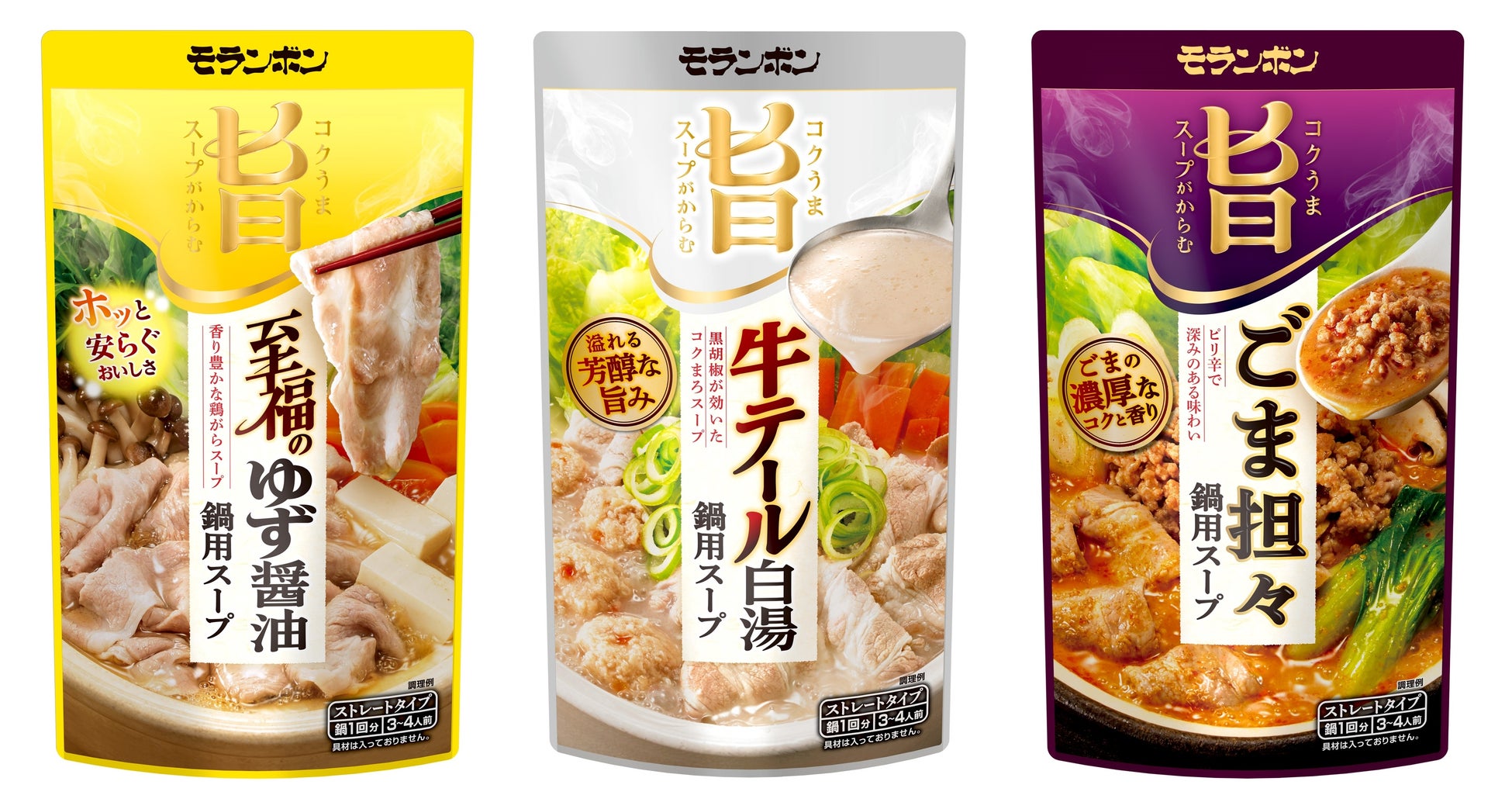 5年連続成長の「コク旨シリーズ」をさらにおいしくブラッシュアップ「コク旨スープがからむ 至福のゆず醤油・牛テール白湯・ごま担々鍋用スープ」