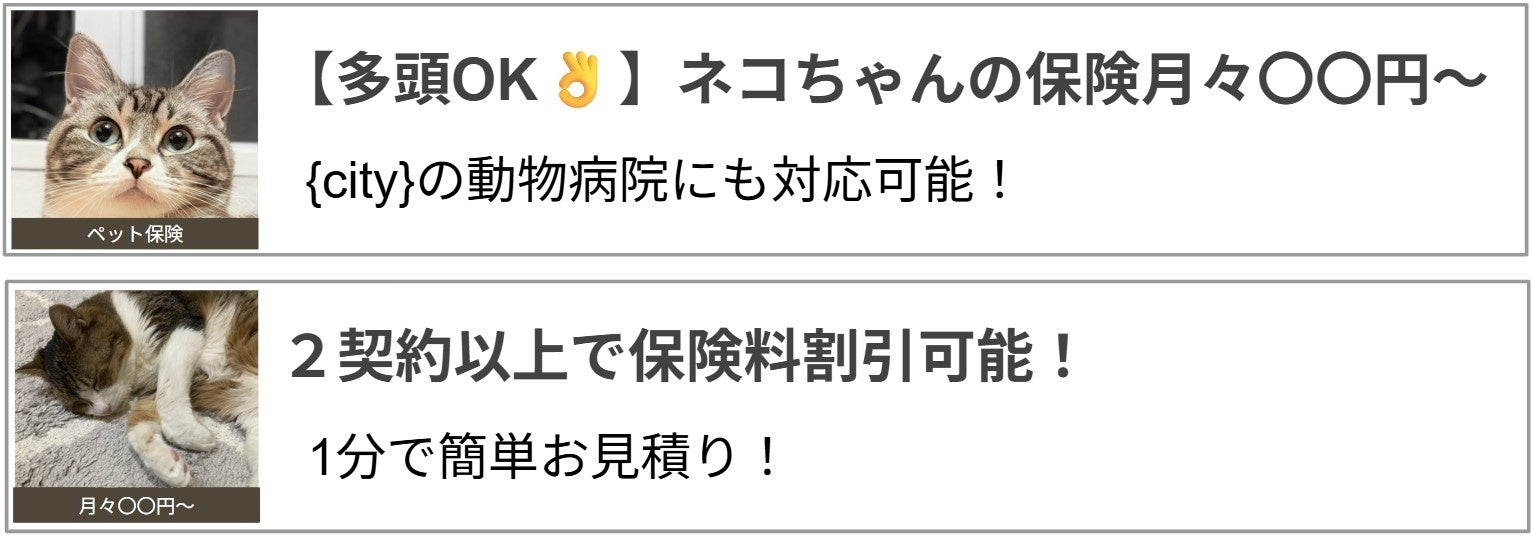 特に成果が高かったクリエイティブでは、保険会社が注力したい「猫」の画像を具体的に使用し、タイトルで「月々〇〇円~」といった具体的な保険料を提示する訴求が効果的でした 。また、「多頭飼い割引」や「1分で簡単お見積り」といったユーザーメリットを分かりやすく訴求することで、費用対効果の向上に成功しています 。