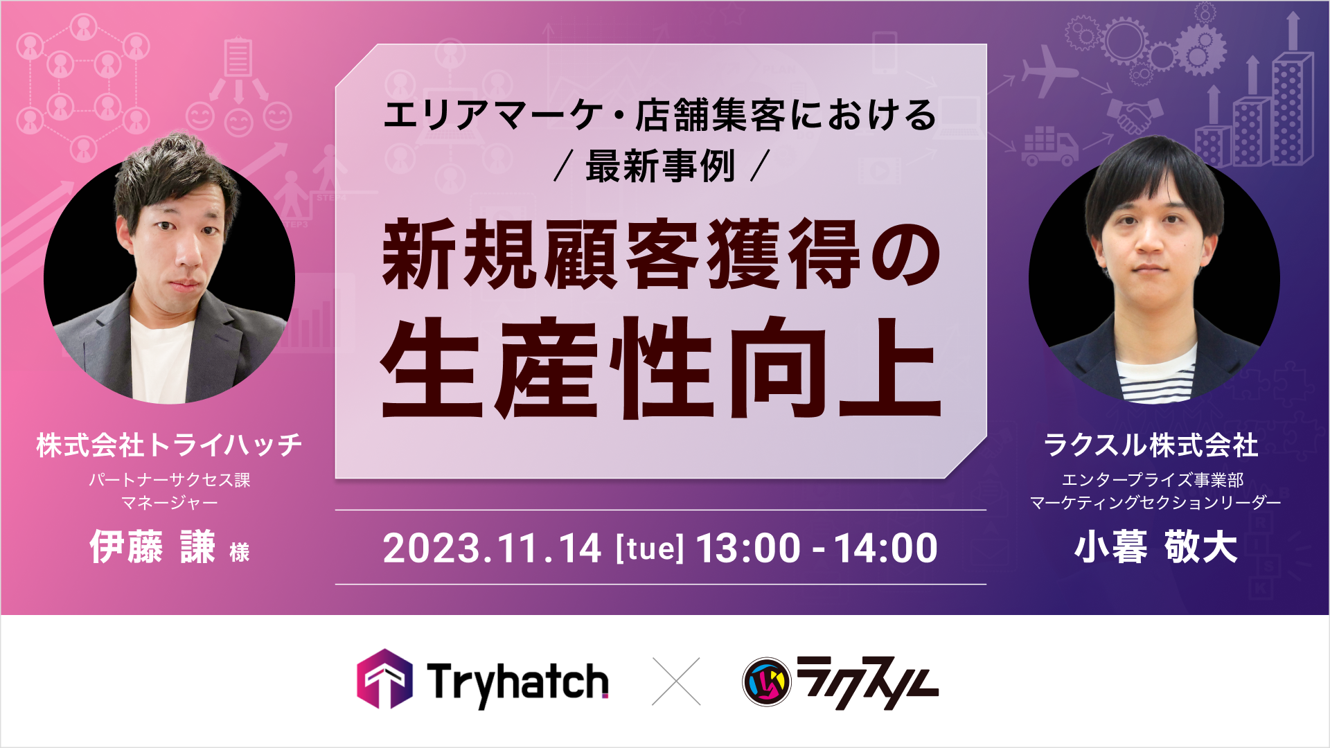 【2023年11月14日(火)トライハッチ×ラクスル共催セミナー】エリアマーケ・店舗集客における最新事例!新規顧客獲得の生産性向上