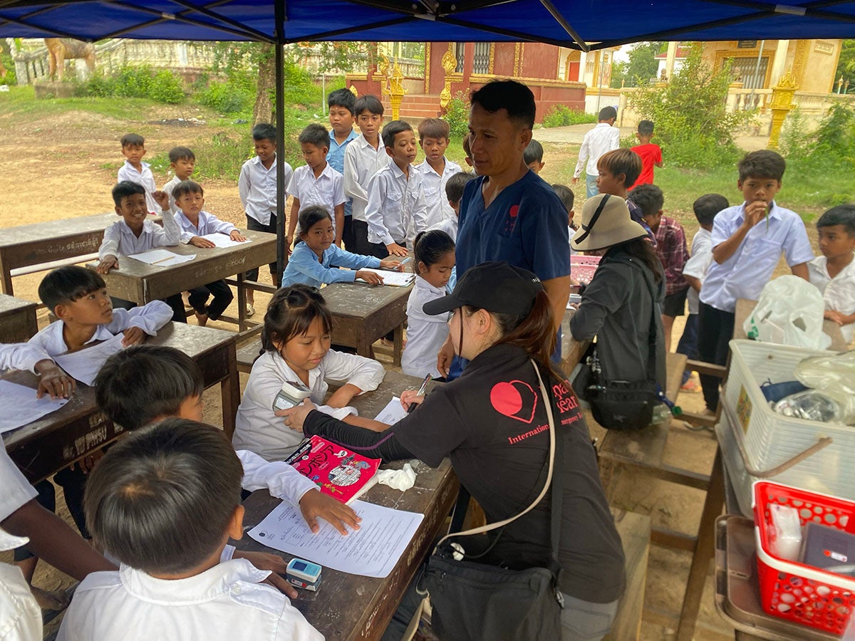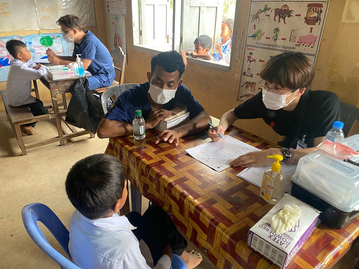 先日終了した第1クールでは、日本から5名、カンボジアの病院からクメール人4名が合流し、2日間で198名の子ども達の健康診断を行いました。参加者からは、「想定以上に飲料水の確保が必要であると分かった」「多国籍チームでのコミュニケーションを学べた」等の声があがっており、明日開始の第2クールでも同様の研修を展開します。