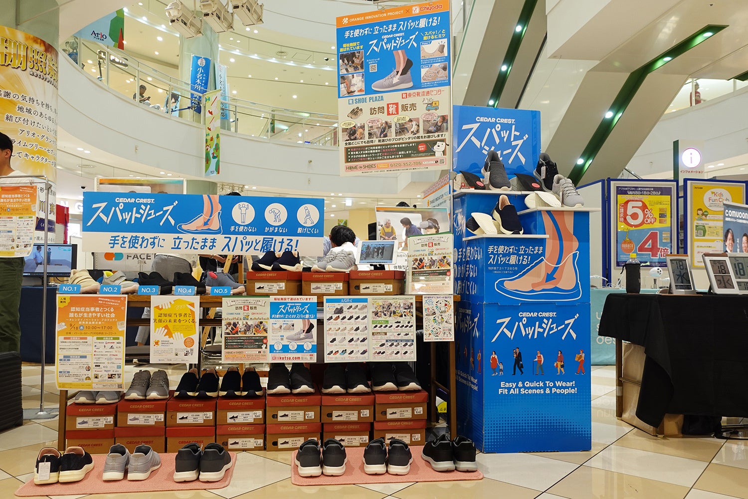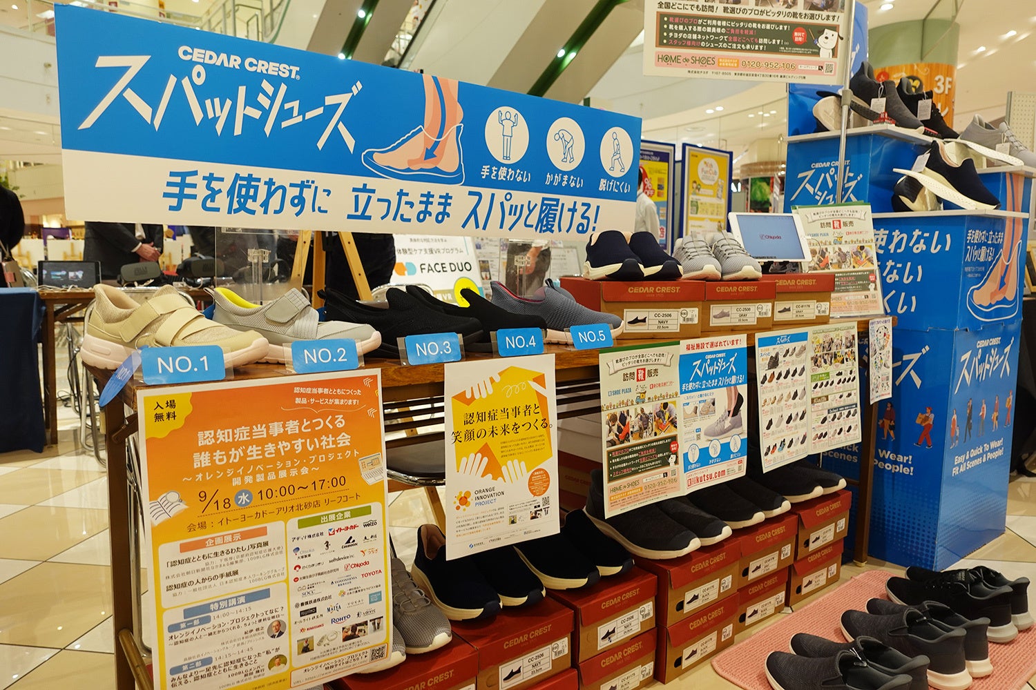 9月18日には、アリオ北砂店(東京都江東区)で行われたオレンジイノベーション・プロジェクトの普及啓発イベント、 9月26日には大和市文化創造拠点シリウス(神奈川県大和市)で開催された認知症のシンポジウムと同時開催された展示イベントに参加いたしました。会場では、当社で行っている福祉施設への靴訪問販売「HOME de SHOES(ホームでシューズ)」でのスパットシューズのニーズの高さから、高齢者、認知症の方々のお役に立てる可能性について来場者の方々へお伝えしました。
