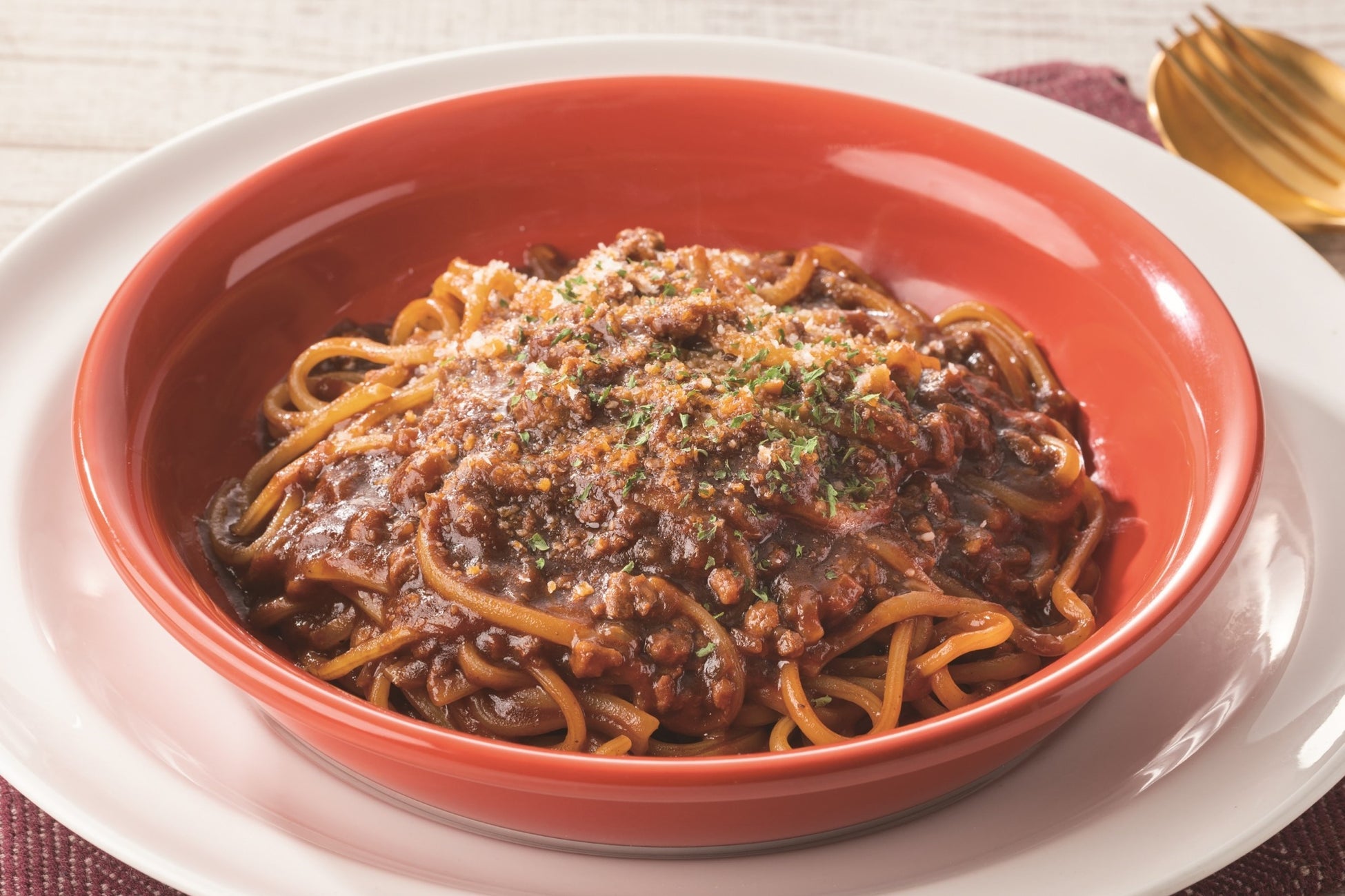 挽肉を赤ワイン・トマト・デミグラスでじっくり煮込んだミートソースは、生パスタと相性抜群です。