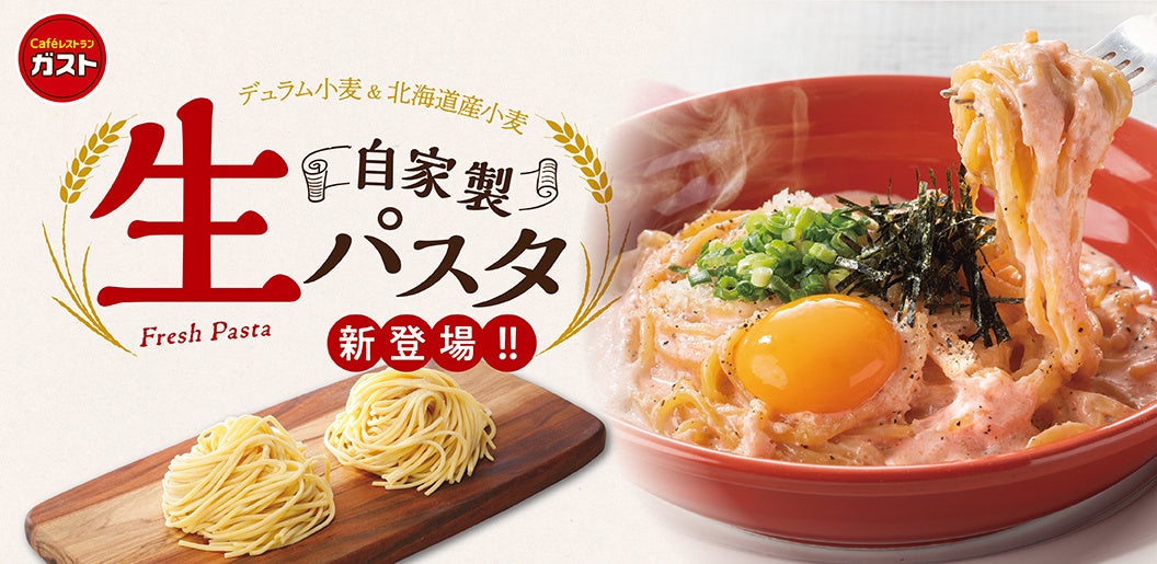 | 【ガスト『春のグランドメニュー大改革』 おすすめポイント】 1, こだわりのモチモチ食感!「自家製本格生パスタ」が登場 11年越しのリニューアル!先行販売で大好評だった自家製生パスタを全国で販売開始いたします。 2, 渾身の新作!「THE ガストハンバーグ」「武蔵野・匠のハンバーグ」が誕生 3, お一人様でもシェアでも、様々なシーンで使い勝手抜群な“プチサイズメニュー”も メインや主菜など全10品が小皿サイズで登場。ご家族でのご利用や仕事終わりの一杯にもぴったりです。 |