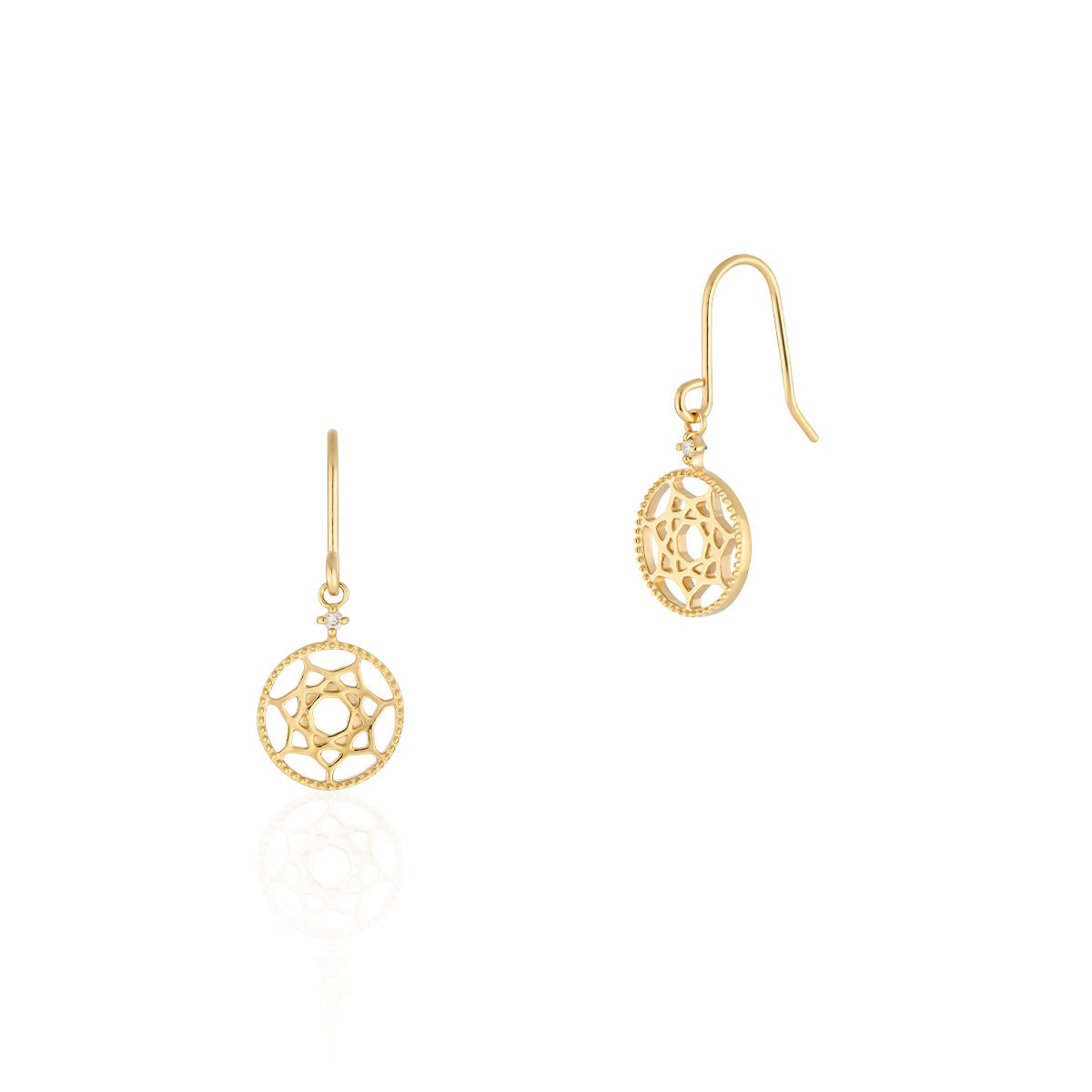 悪い夢を払いのけ、いい夢のみを運んでくれる「ドリームキャッチャー」モチーフのネックレス、ピアス、ブレスレット。実はパワーストーンとして知られ、古代より「勝利」や「何ものにも屈しない強い心」という意味が込められているダイヤモンドを散りばめました。すっきりとしたサークルのシルエットはシーンを選ばず着用いただけます。
