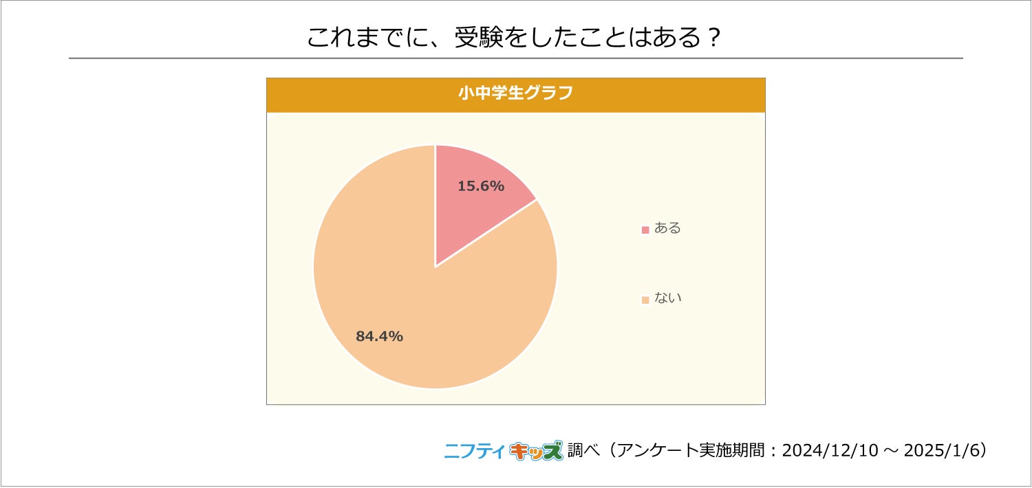 また、これまでに受験をしたことがあるか聞いたところ、小中学生の8割以上が「ない」と回答しました。高校進学の際に初めて受験を経験する人がほとんどのようです。