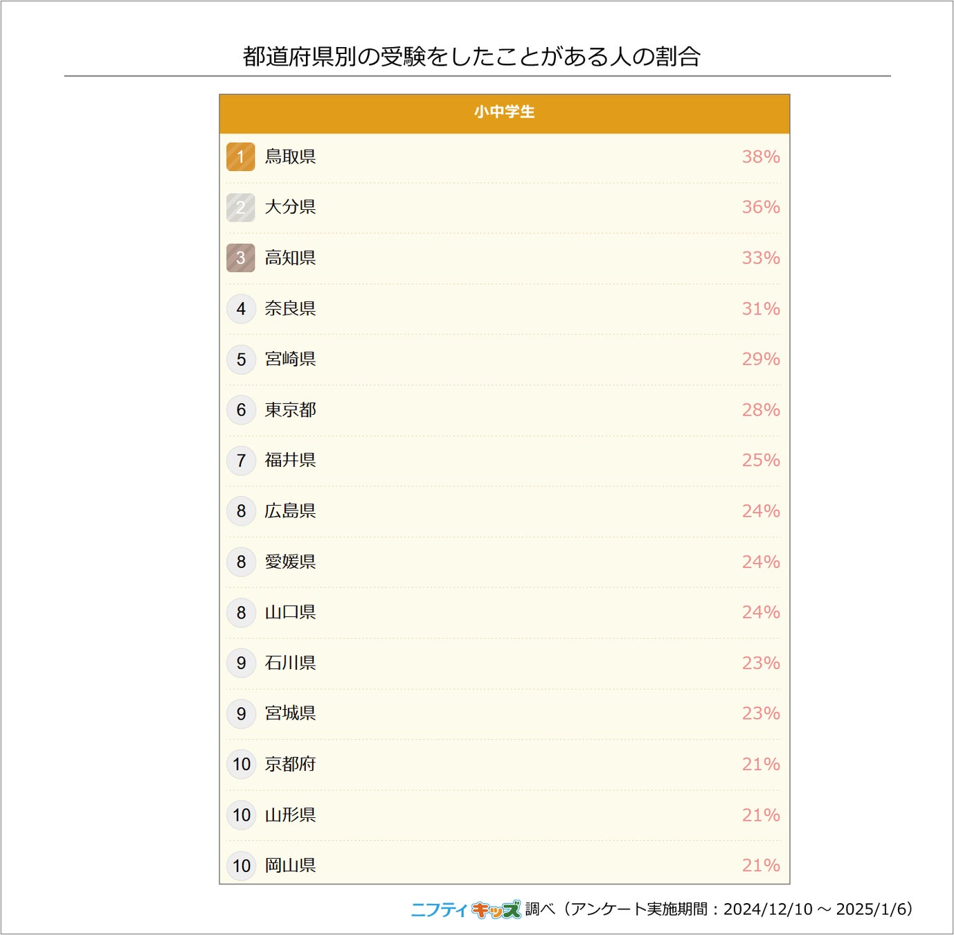 都道府県別に受験をしたことがある人の割合をみると、西日本の都道府県が上位となることがわかりました。