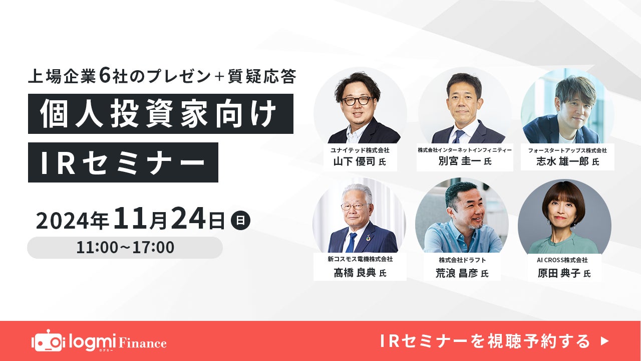 11月24日(日)ログミーファイナンス主催「個人投資家向けIRセミナー」登壇のお知らせ