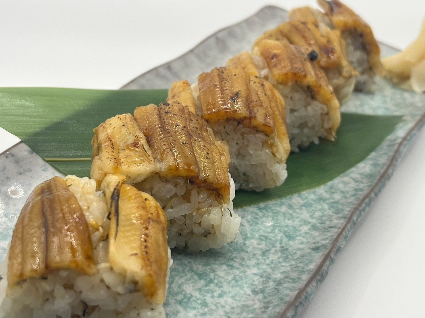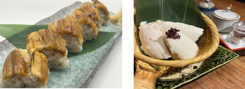 ▲(左から)広島県穴子棒寿司、青森県自然薯豆腐