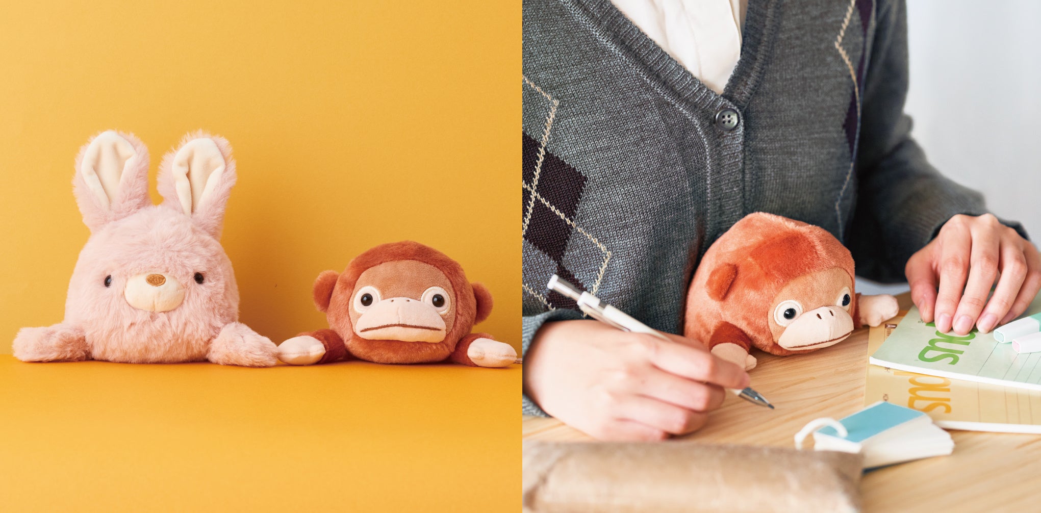 『ふんばるず』は、あなたの“ねこぜ”を良くしてくれる「こころ」を持っています。ぬいぐるみの中にはハート型のクッションが入っているので、長時間のデスクワークでついついねこぜになってしまっても、クッションがきれいな姿勢をキープさせ、お仕事や勉強中の疲れを軽減させてくれます。ウサギ、クマ、ナマケモノ、オランウータンの4種類がラインナップ。思わずなでてしまいたくなる柔らかな毛並み、つぶらな瞳や愛らしい表情に癒されることでしょう。手軽に持ち運びができる『ふんばるず S&Mサイズ』も今後発売予定です。