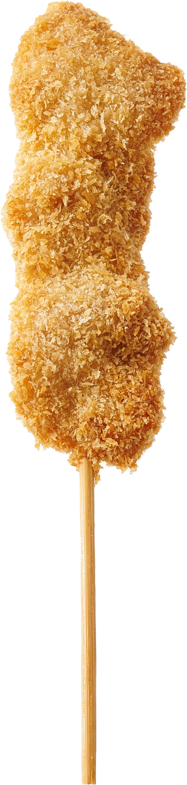 大人気のささみ串に明太子をのせました。ささみのやわらかい食感と明太子の旨味が味わえる串カツです。