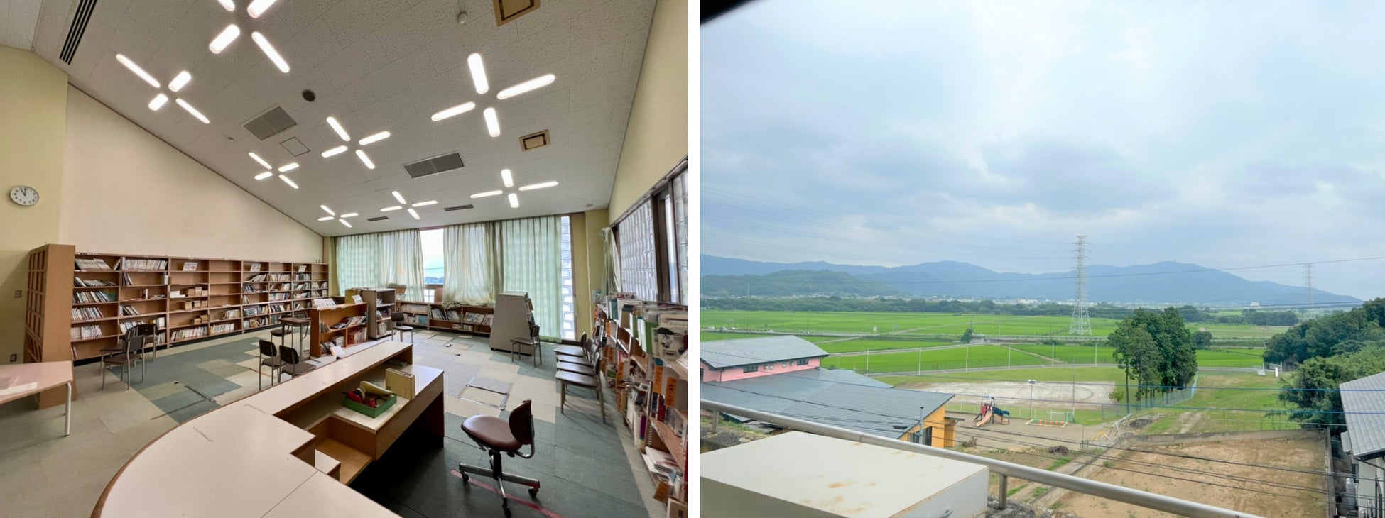 旧田水山小学校は、つくば市北部の高台に位置し、筑波連山を眺望できます。校舎は比較的新しく、構造及び外観・内装は近代的で、一般的な校舎という型にはまらない姿も魅力のひとつです。
