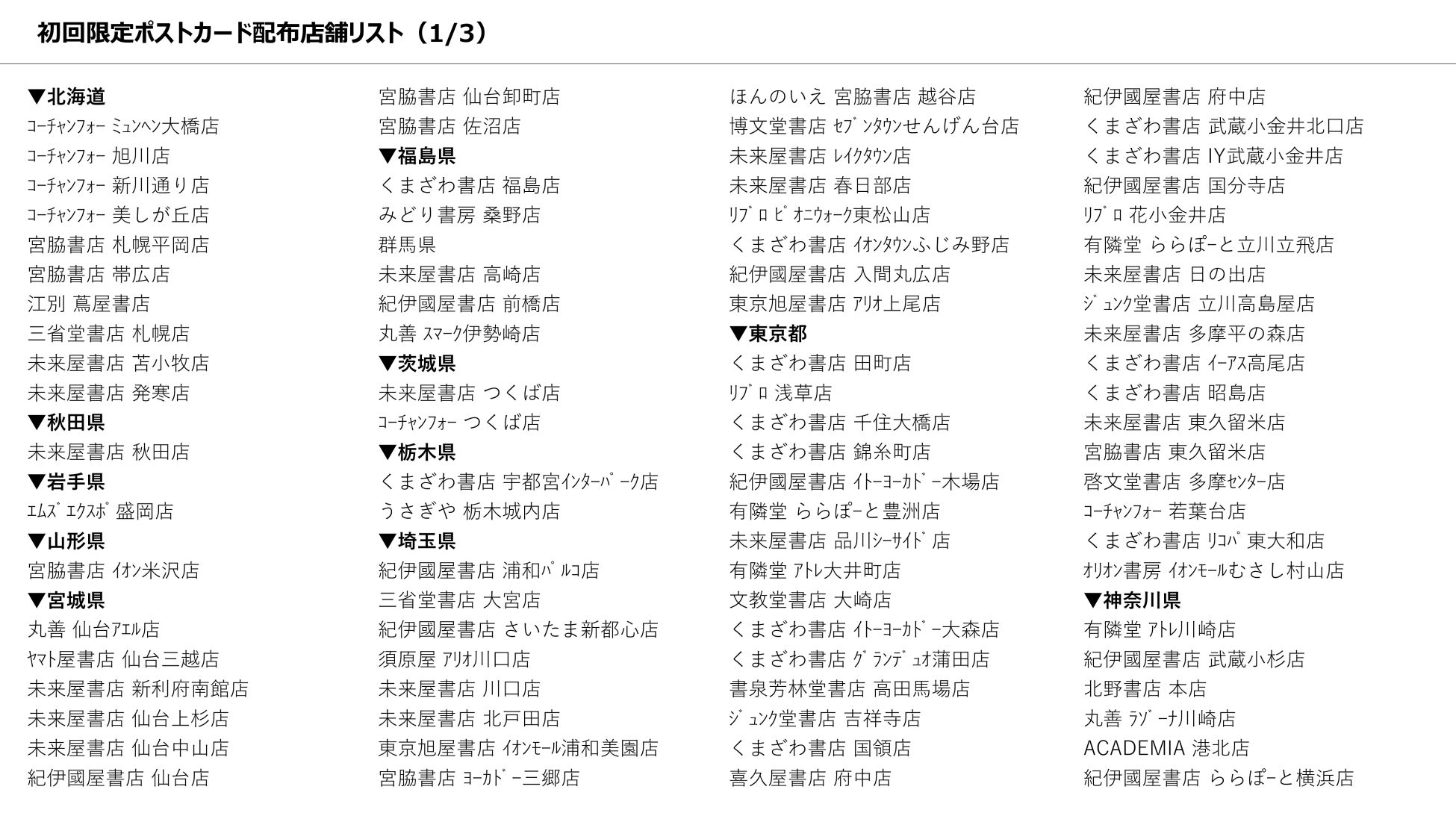 ●一部書店では、数量限定特典のオリジナルポストカードをプレゼント