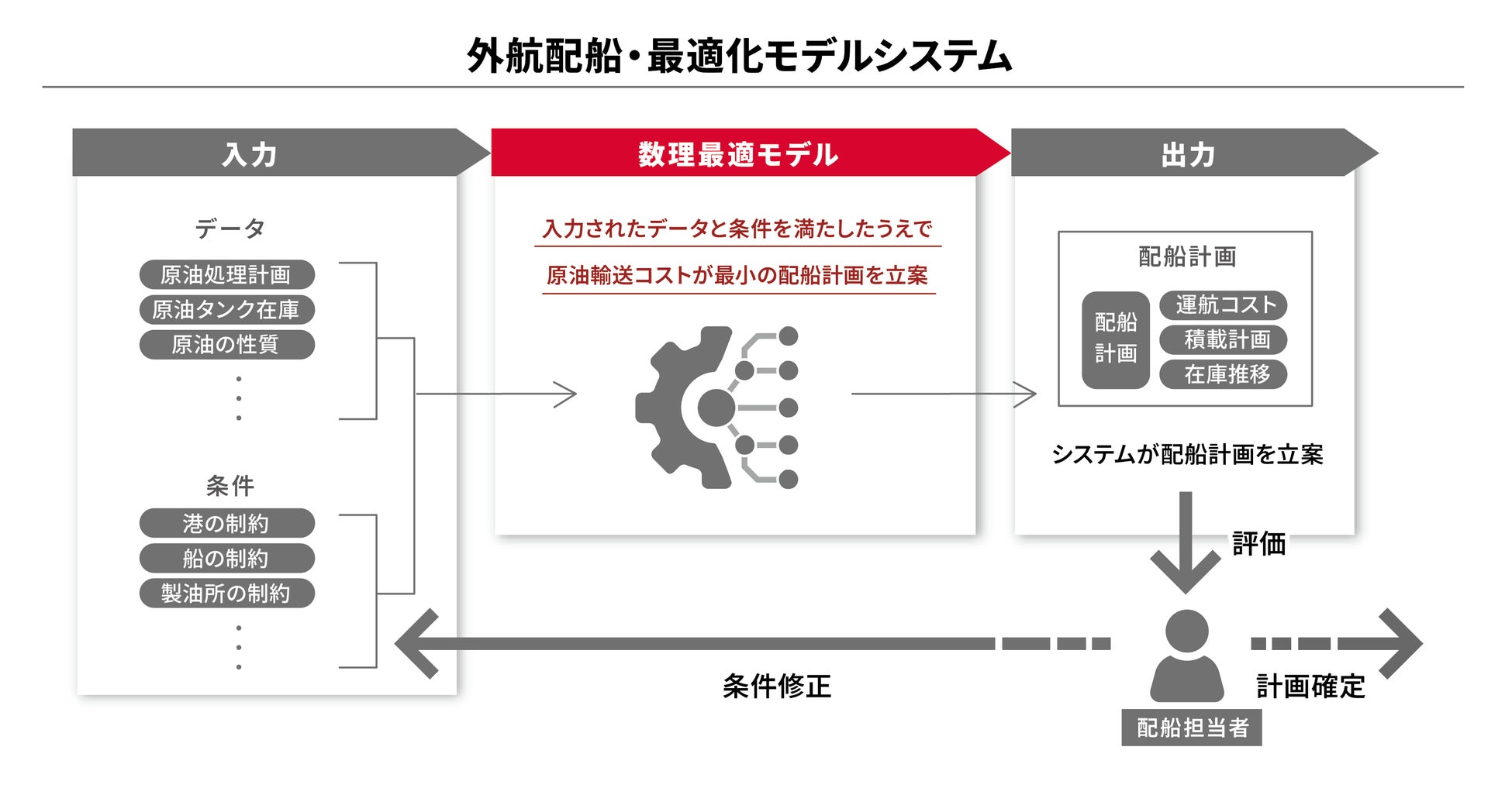 原油輸送は、石油元売会社にとって大きなコスト要因ともなっています。安定供給を維持しつつも、コスト最適化のための適切な判断が極めて重要であり、収益におけるインパクトも大きなものになります。導入に先立って行った実証試験では、本システムにより外航船配船における計画立案の作業時間を最大40%削減できました。寄港数の削減などによって、年間で最大数億円規模の運航コスト削減が見込まれています。