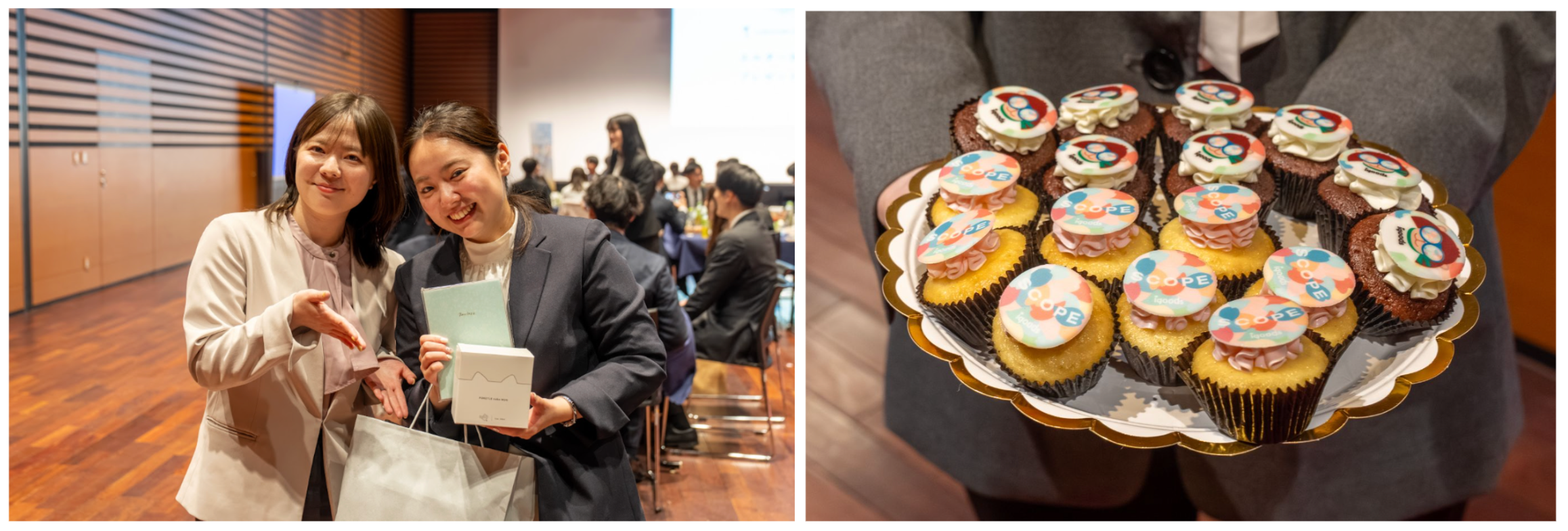 2.「チーム」にピントを合わせ、育成担当の発表やサプライズカップケーキを楽しむ