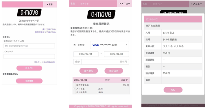 QUADRACのQ-moveサイトにアクセスし、「マイページ」の会員登録手続きが完了しますと確認可能です。