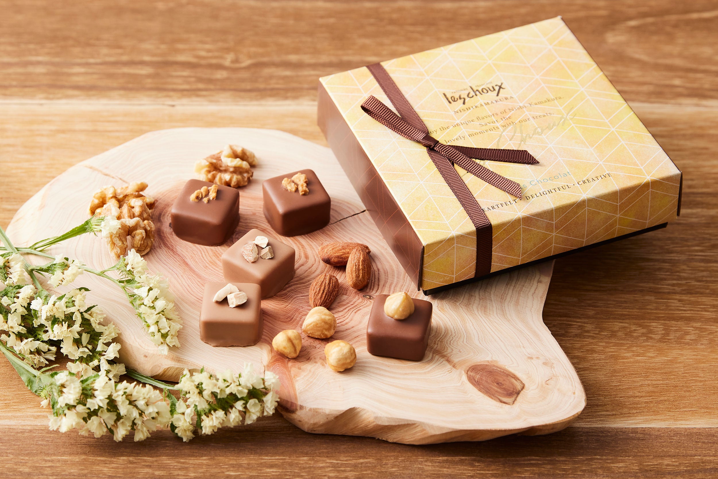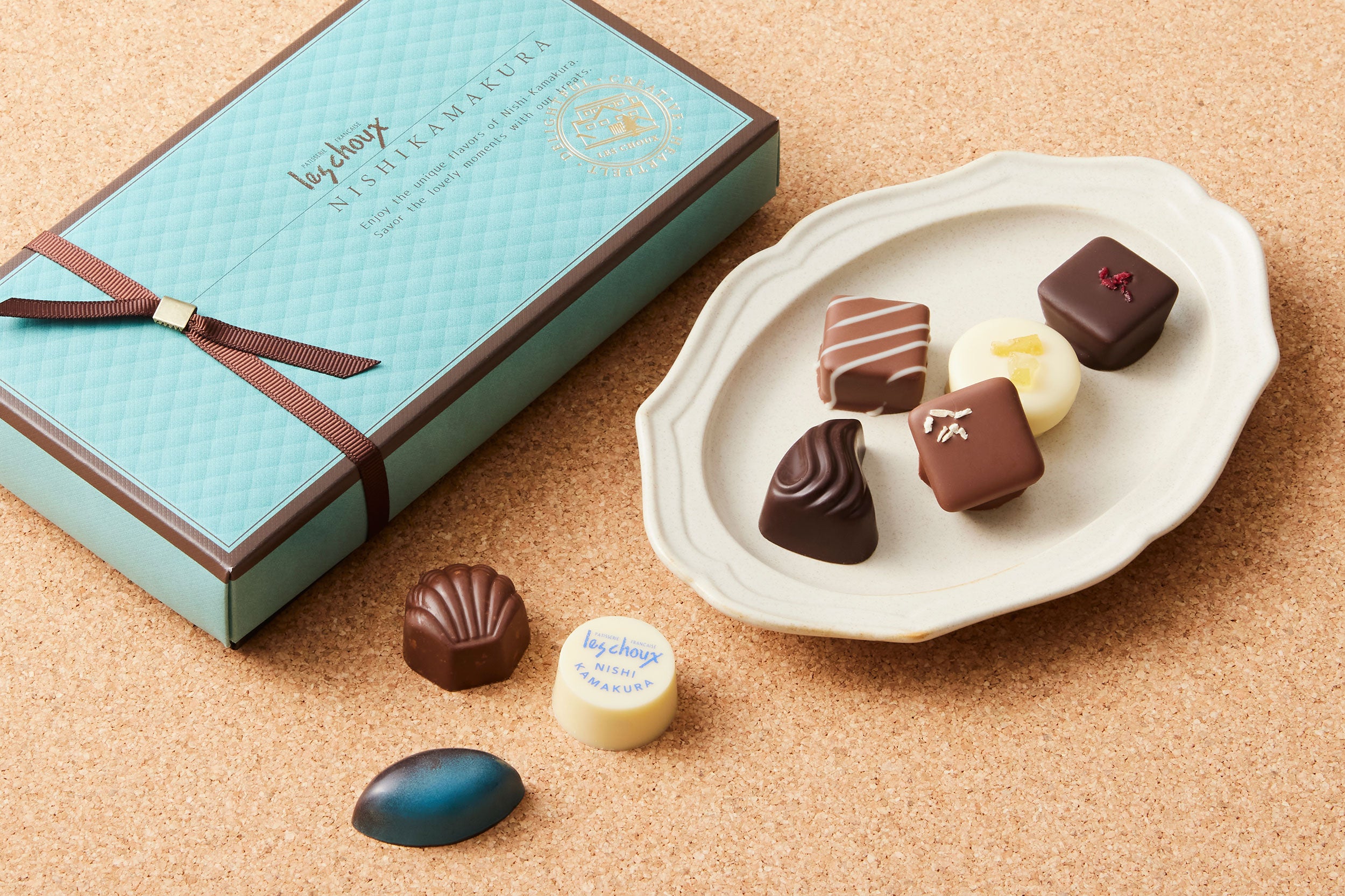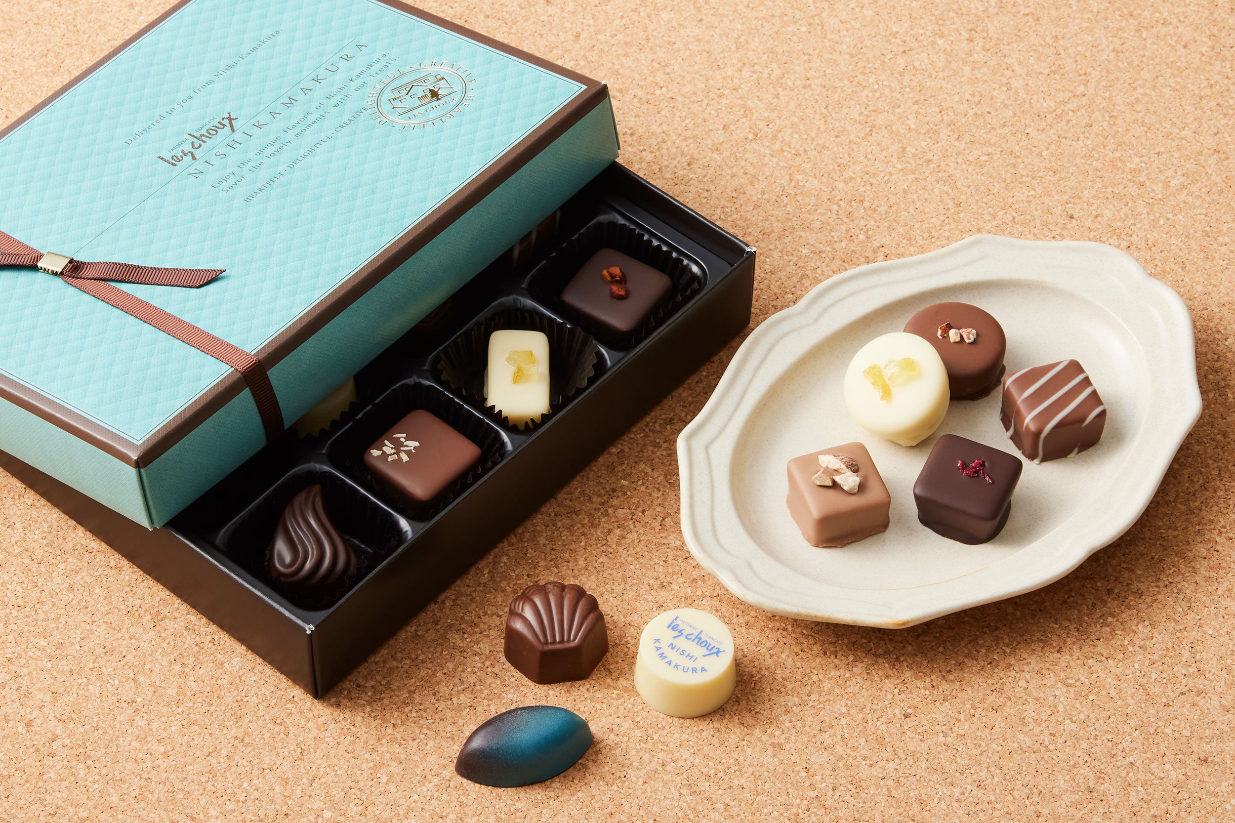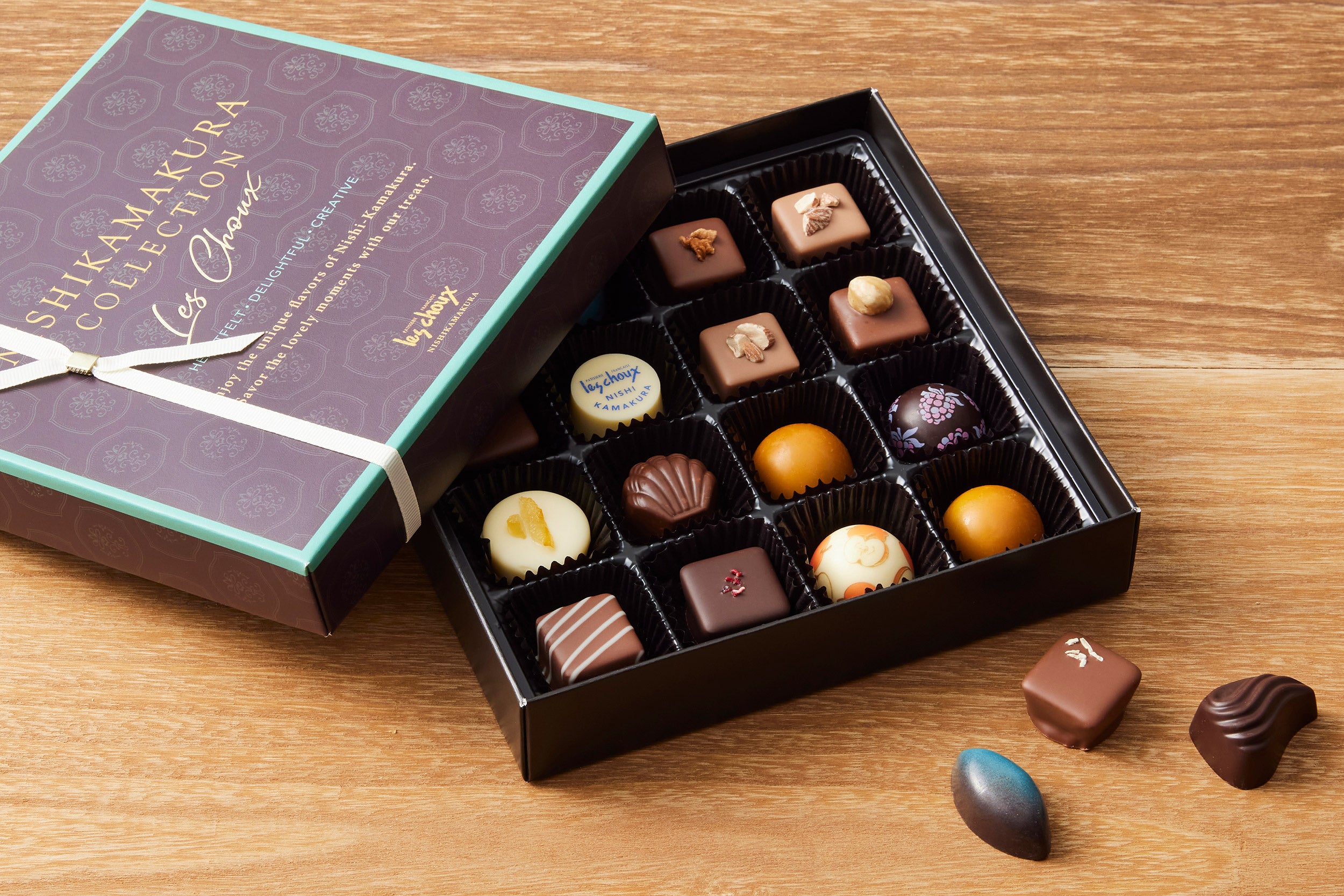 西鎌倉ショコラ、木の実のショコラ、シェフのジュレショコラから、シェフが厳選したショコラを少しずつアソートしました。