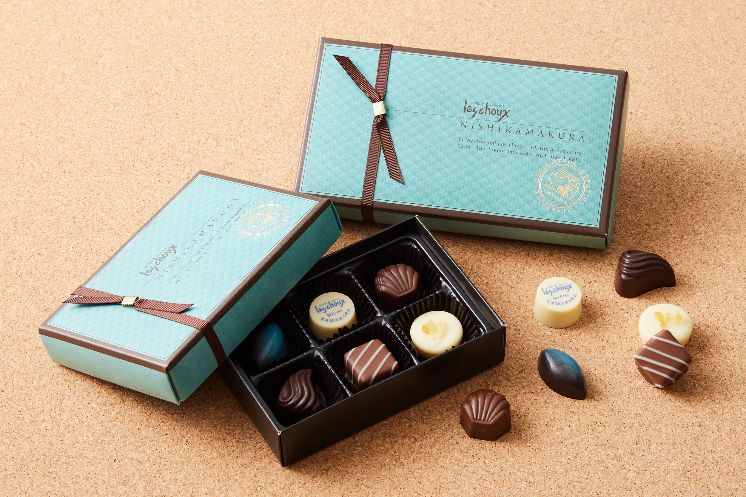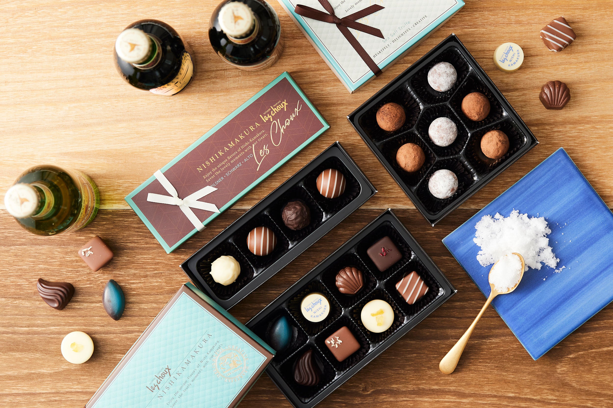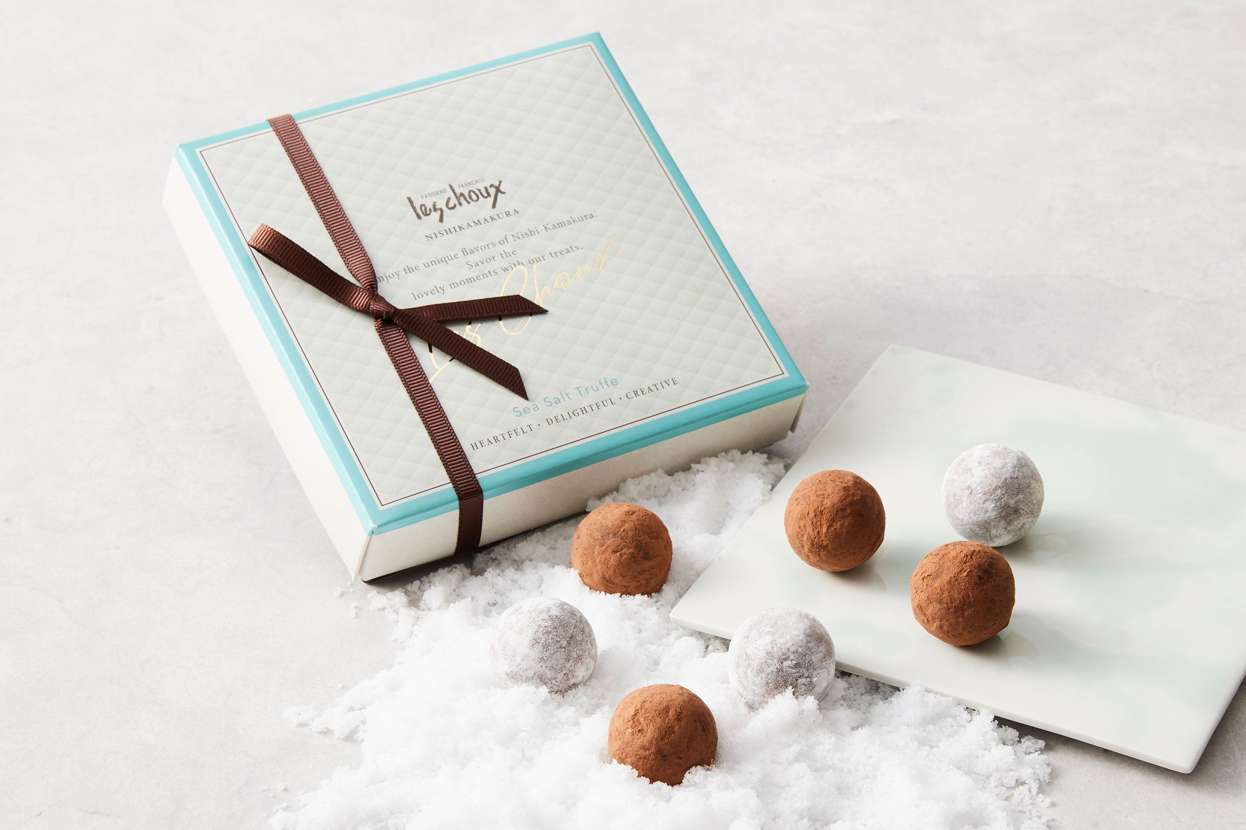 景観の美しい西鎌倉の海に思いを馳せて、塩キャラメルガナッシュと塩レモンガナッシュの2種のフレーバーが出来上がりました。