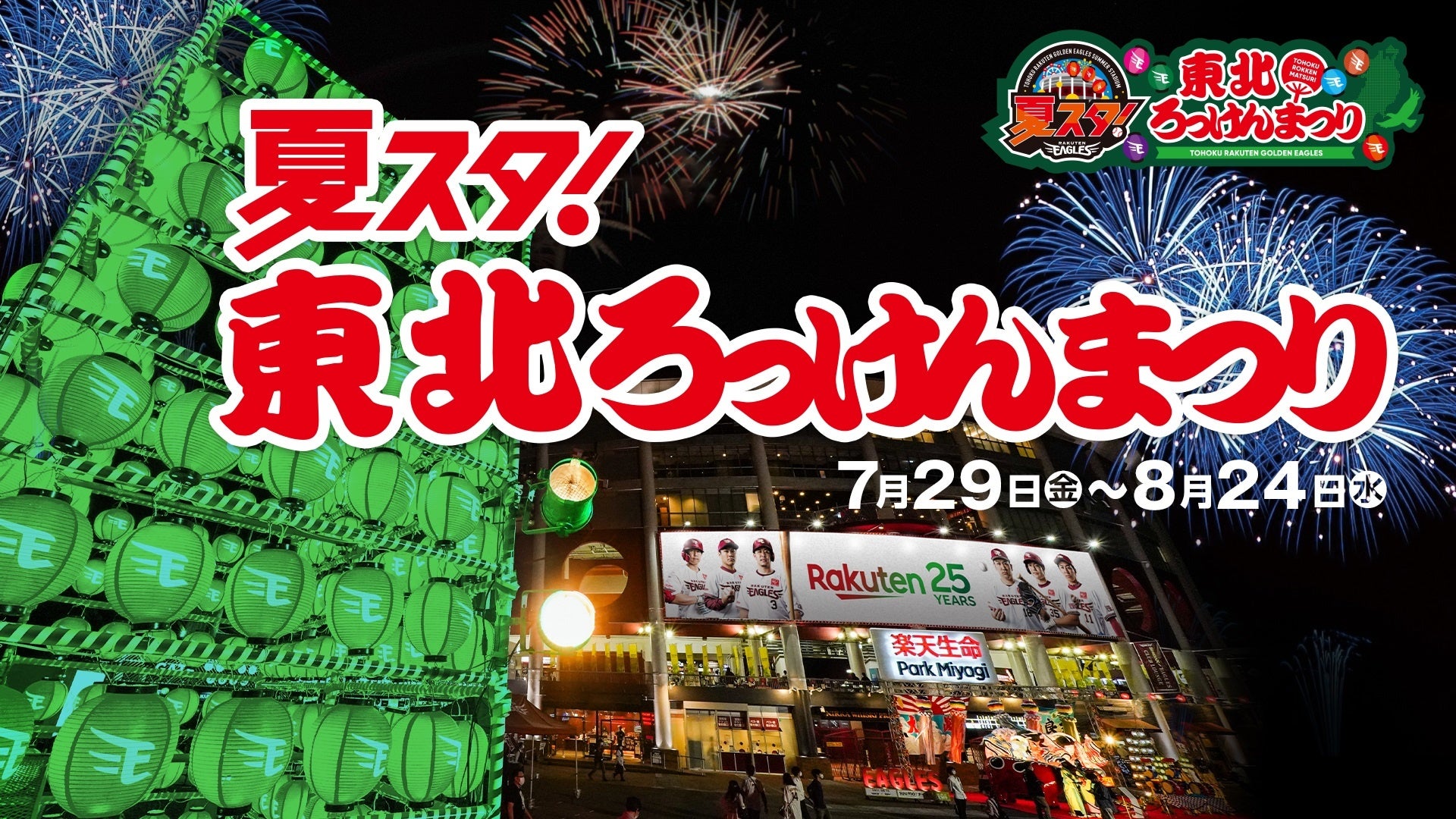 株式会社楽天野球団(本社:宮城県仙台市宮城野区、代表取締役社長:米田 陽介)は、7月29日(金)北海道日本ハムファイターズ戦から8月24日(水)福岡ソフトバンクホークス戦までの13試合において、楽天生命パーク宮城で『夏スタ!ろっけんまつり』を開催することとなりましたので、お知らせいたします。