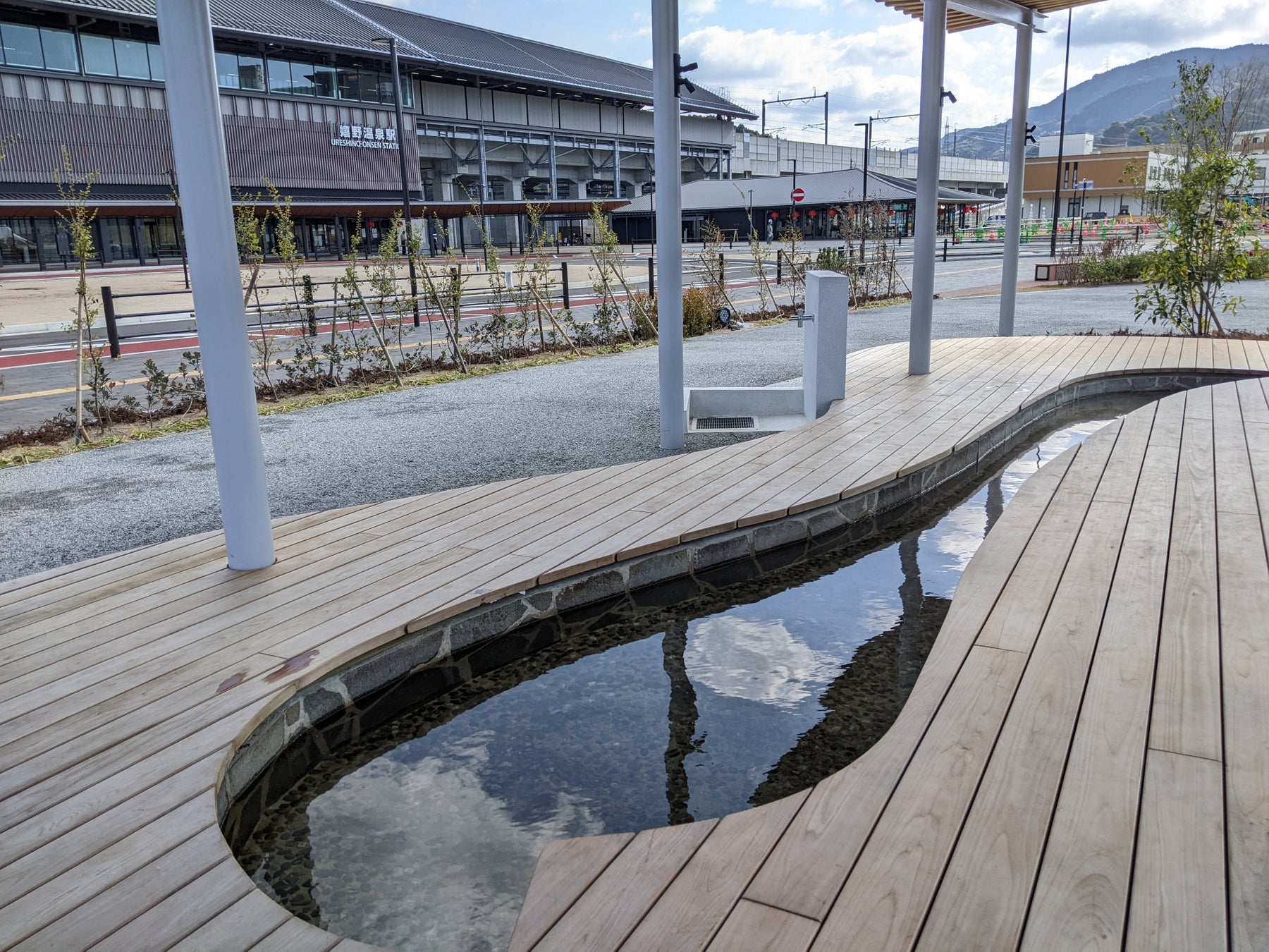嬉野温泉駅には駅前と公園内に嬉野温泉を引いた手湯と足湯があります。