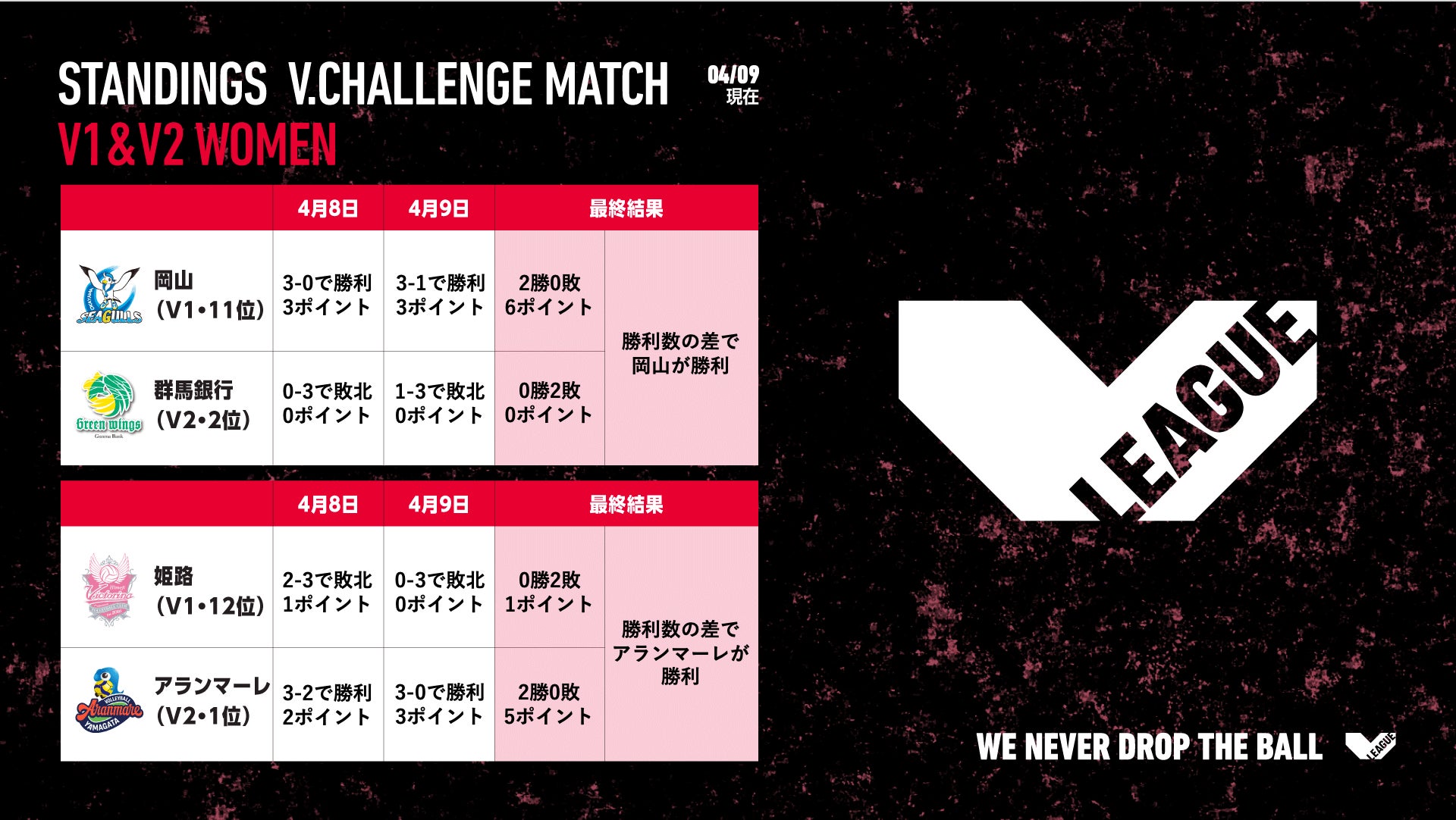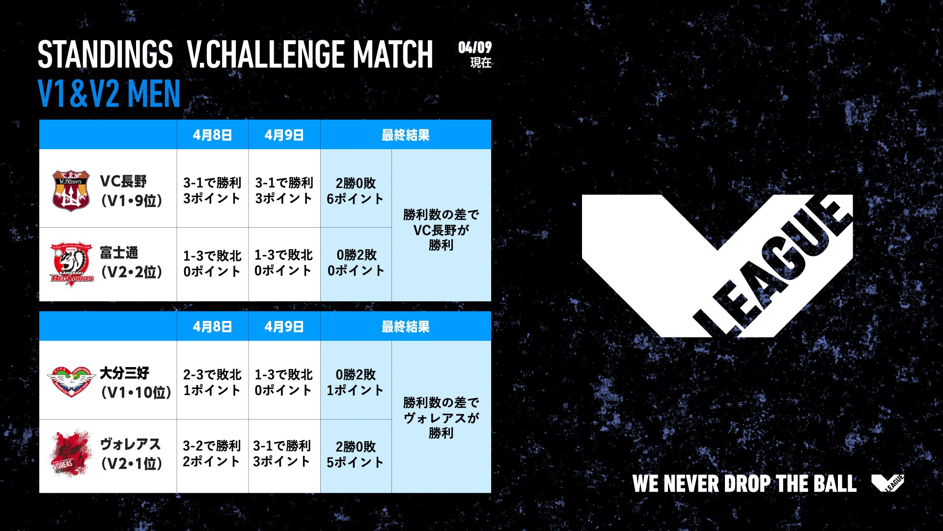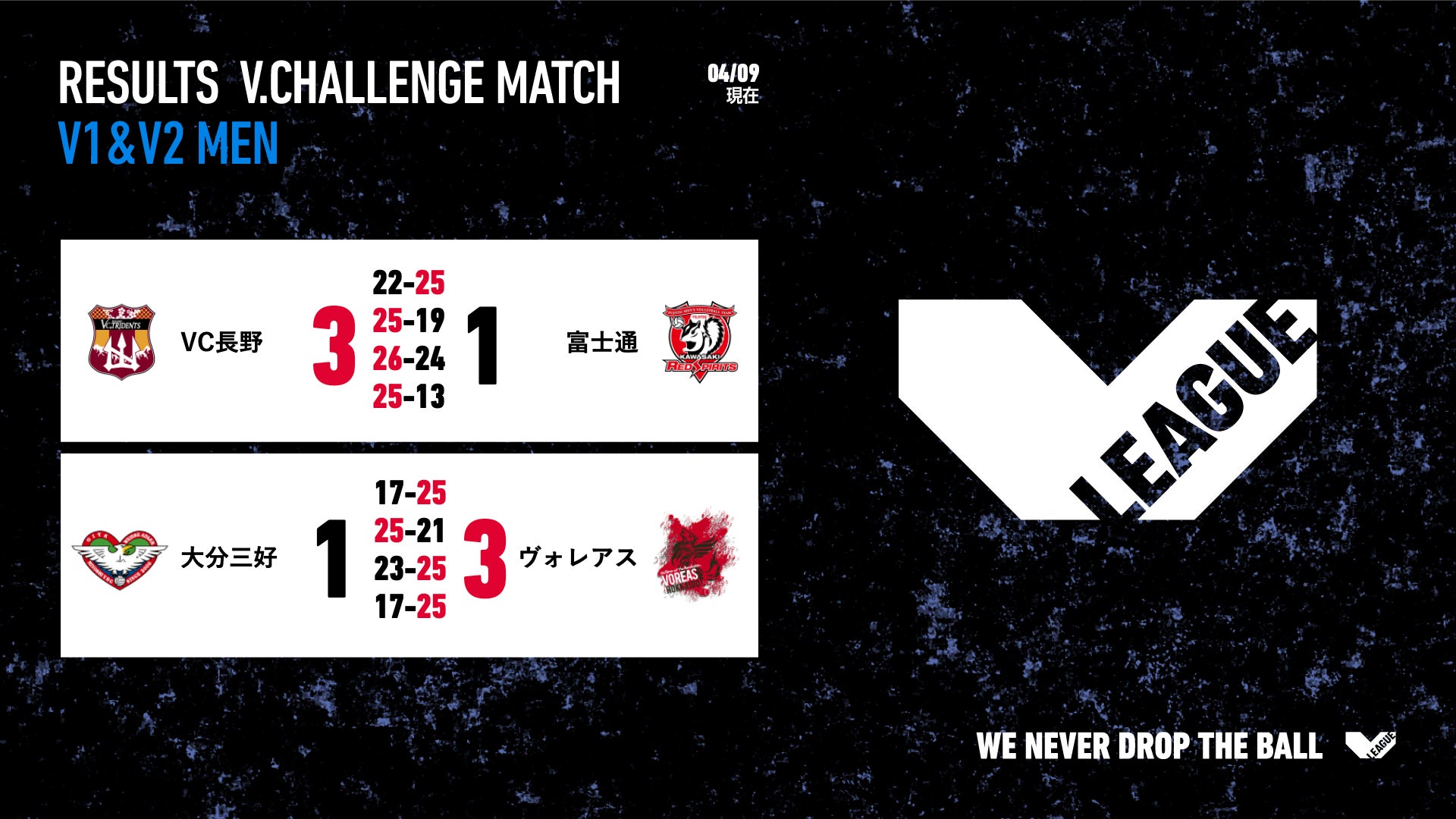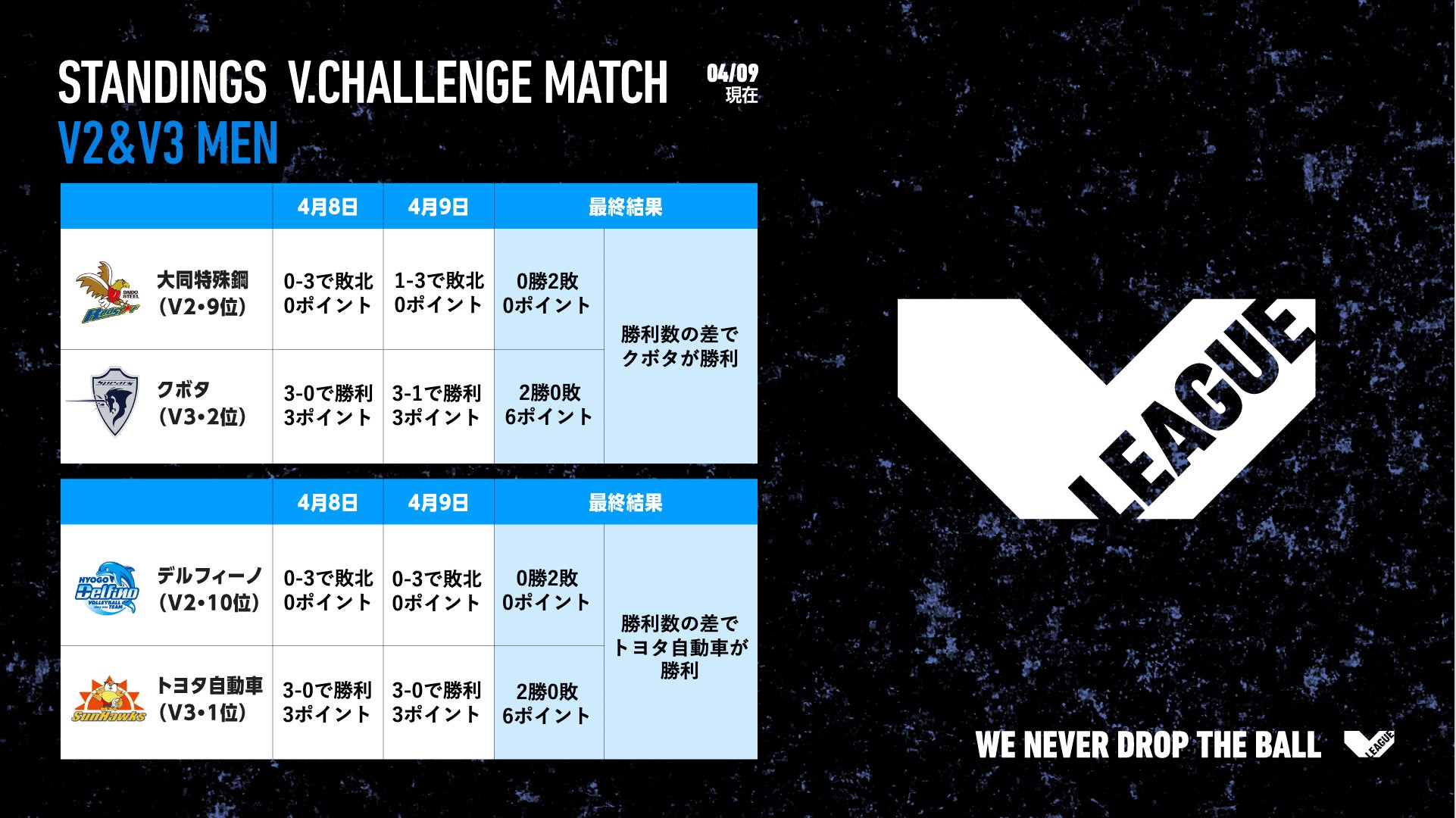 バレーボール国内最高峰リーグ V.LEAGUE【4月9日の試合結果】