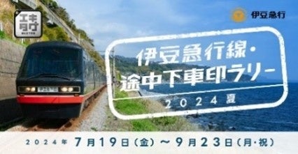 ◎2024年7月19日(金)~9月23日(月・祝)で、伊豆急行にて「伊豆急行線・途中下車印ラリー2024 夏」を実施いたします。期間中に伊豆急行全15駅(南伊東駅~伊豆急下田駅)のスタンプを取得した方には「15駅達成スタンプ」をプレゼントします。さらに、抽選で「ルネッサペア宿泊券」などの景品が当たるチャンスも!ぜひチャレンジしてください!