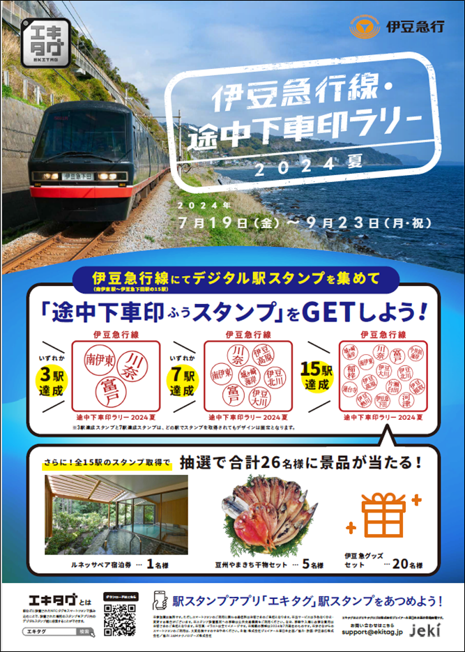 駅スタンプアプリ「エキタグ」多摩モノレール「デビューキャンペーンラリー」、伊豆急行「伊豆急行線・途中下車印ラリー2024 夏」を開催!