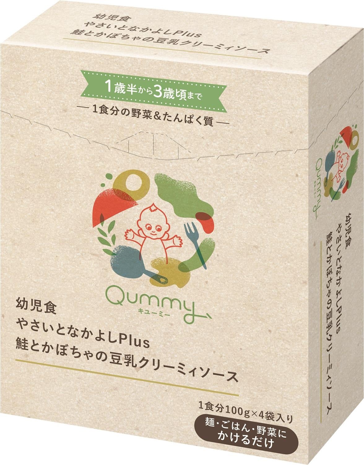 お肉やお魚たっぷりの本格派こだわり幼児食! 1食分の野菜とタンパク質が取れる『Qummy®』オリジナル幼児食「やさいとなかよしPlus」を2品で新発売。ミートソース/鮭とかぼちゃの豆乳クリーミィソース