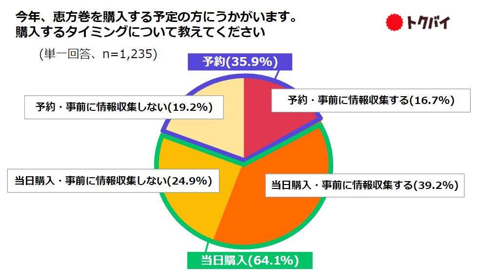 恵方巻きを購入するタイミングは「予約派」35.9%、「当日購入派」64.1%、主な情報収集元は「チラシ」