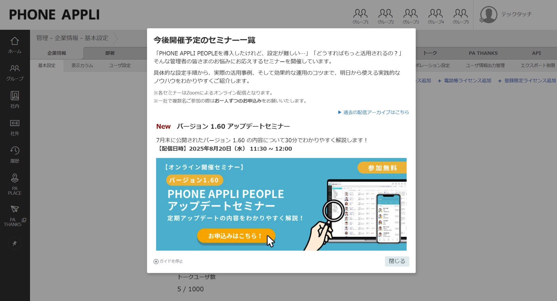 AI型次世代DAP「テックタッチ」を開発・提供し、DAP市場国内シェアNo.1のテックタッチ株式会社は、株式会社PHONE APPLI(本社:東京都港区、代表取締役社長:大林 春彦、以下 PHONE APPLI)が提供する、コミュニケーションポータル「PHONE APPLI PEOPLE」に「テックタッチ」が採用されたことをお知らせします。