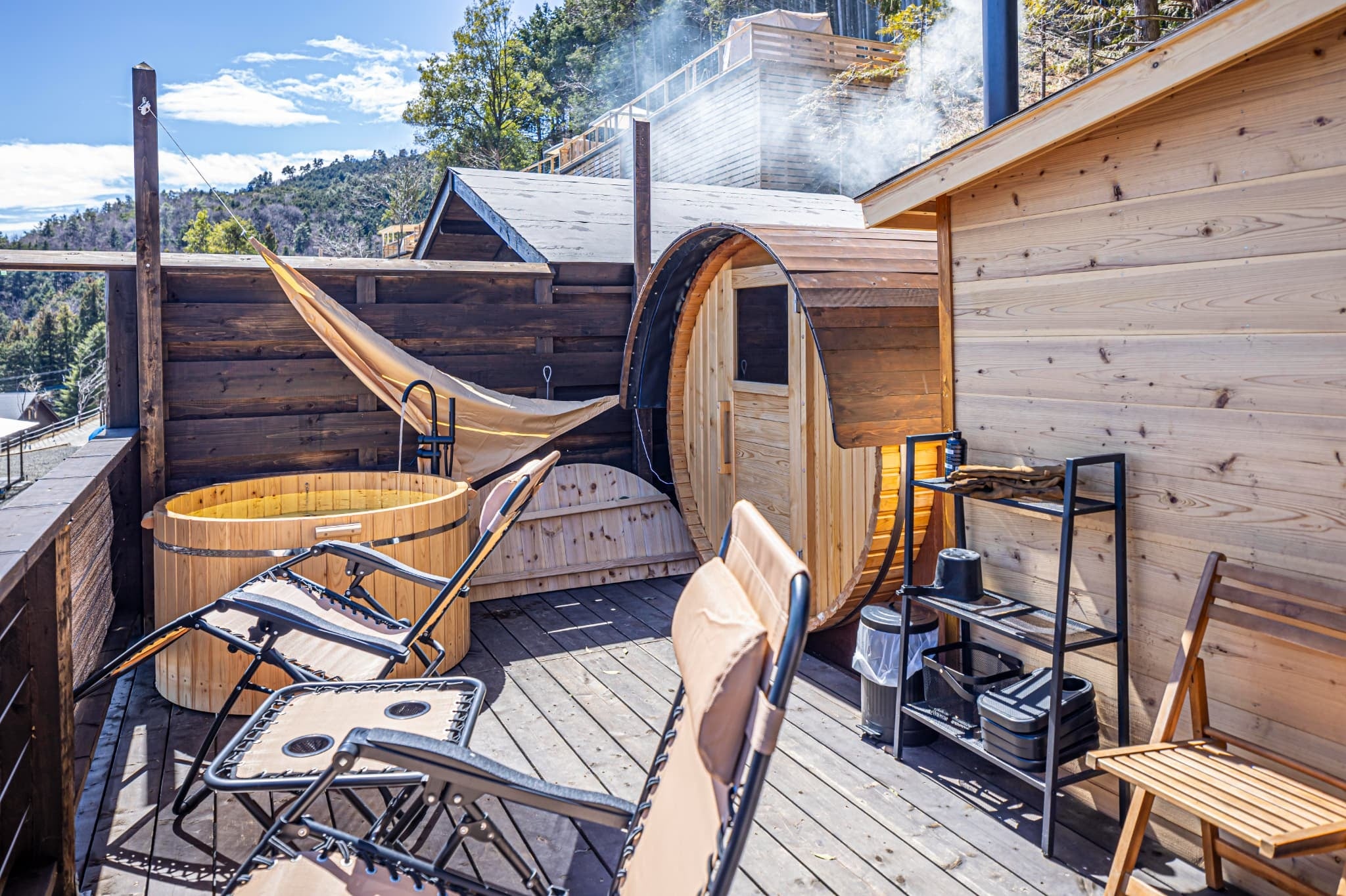 トワイライト(テントサウナ付き) | 8人 | ダブルサイズ×4(2段ベッド) | 2 | 3名様以上の利用を想定した2棟貸切タイプのお部屋です。 | 10,000円~/人(3名利用時) |