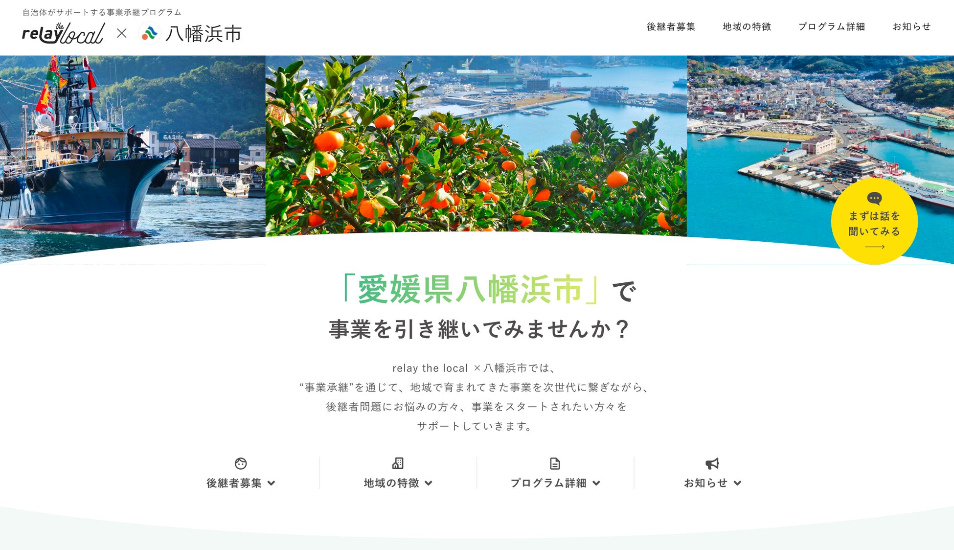 【自治体向け事業承継支援サービス】事業承継マッチングプラットフォーム「relay」、愛媛県八幡浜市に特化した後継者募集の特設ページ「relay the local 八幡浜市」を開設