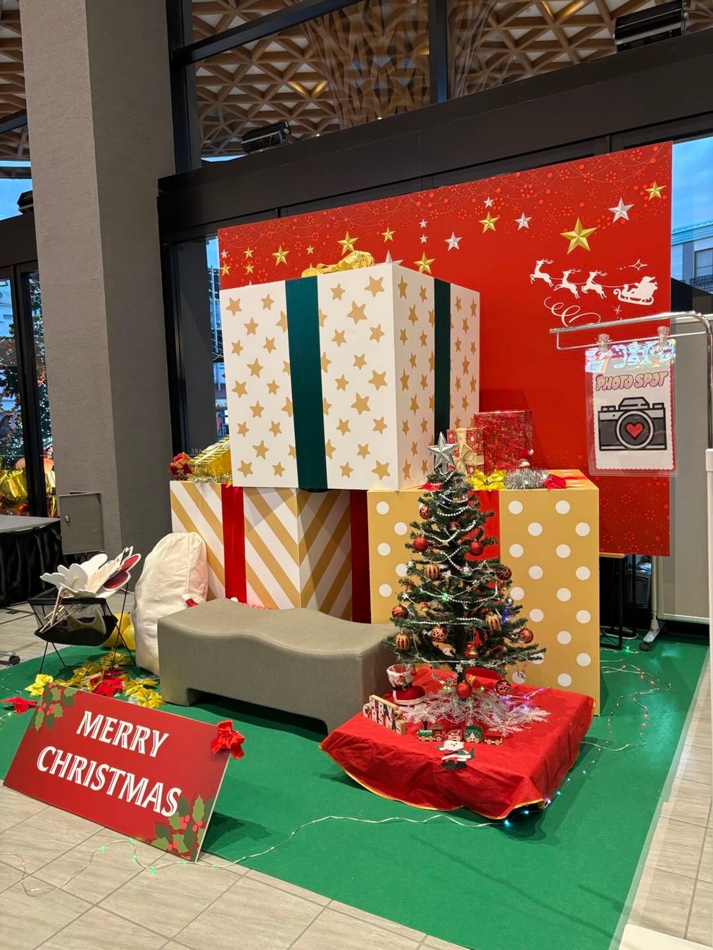 会場中央には存在感たっぷりのクリスマスツリー。プレゼントボックスやオーナメント、ライトアップされた装飾がとても華やかで、思わず写真を撮りたくなるスポットがたくさんありました。フォトスポットも用意されており、家族連れやカップル、友人同士で写真撮影を楽しむ姿が印象的でした。