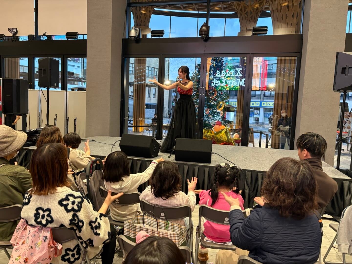 時間帯によってステージイベントも行われ、歌のパフォーマンスが会場を盛り上げていました。ツリーとイルミネーションを背景にしたステージは、まさにクリスマスならではです。立ち止まって聴き入る人や、子どもと一緒に楽しむ家族の姿も多く見られました。