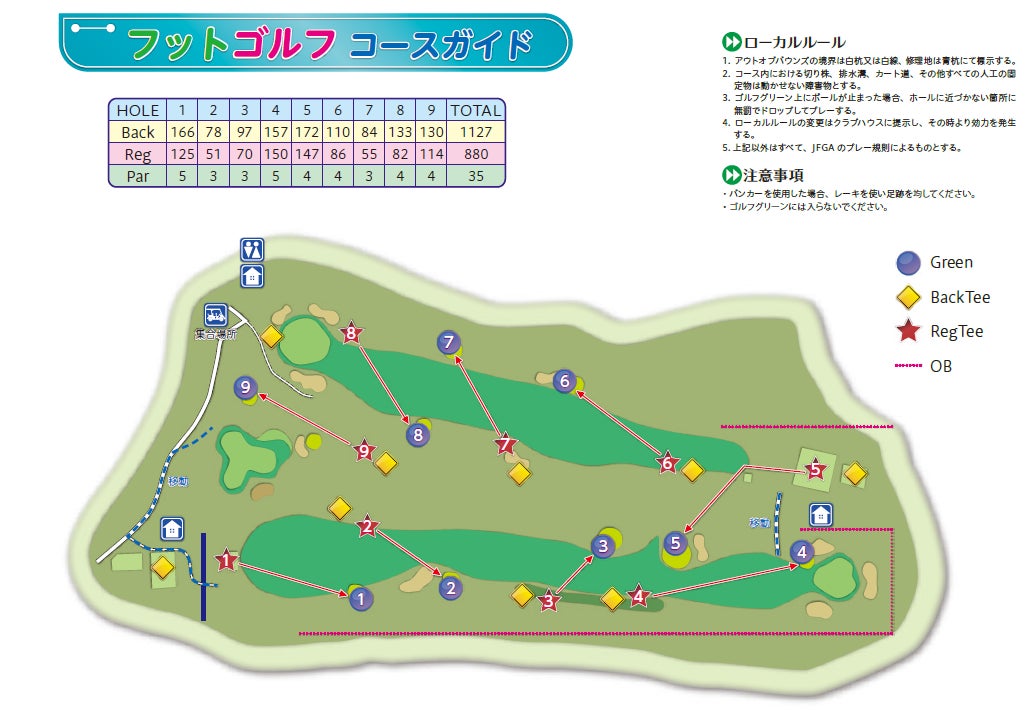 ※フットゴルフのご利用者は、ラウンジ、練習場、レストラン、コンペルームがご利用いただけません。