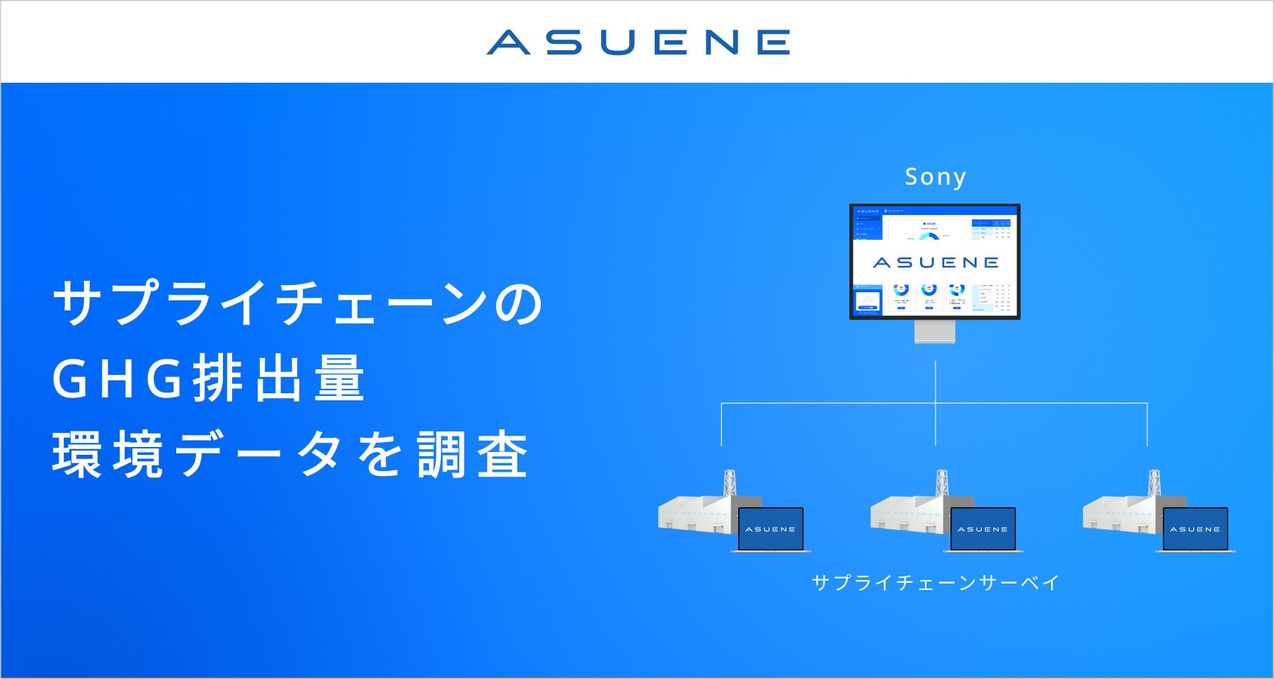 ソニーグループは「ASUENE」のサプライチェーンサーベイ機能を活用し、グローバルに点在する多数のサプライヤーから、Scope3の一次データを含むGHG排出量や環境データの調査・回収を実施します。