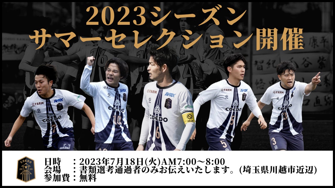 【7月18日(火)サマーセレクション】埼玉県川越市からJリーグを目指す「COEDO KAWAGOE F.C」、トップチームセレクションを開催