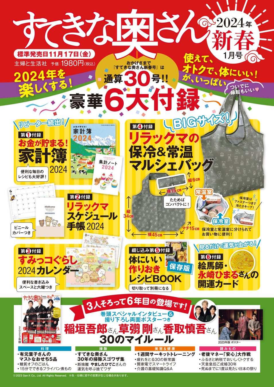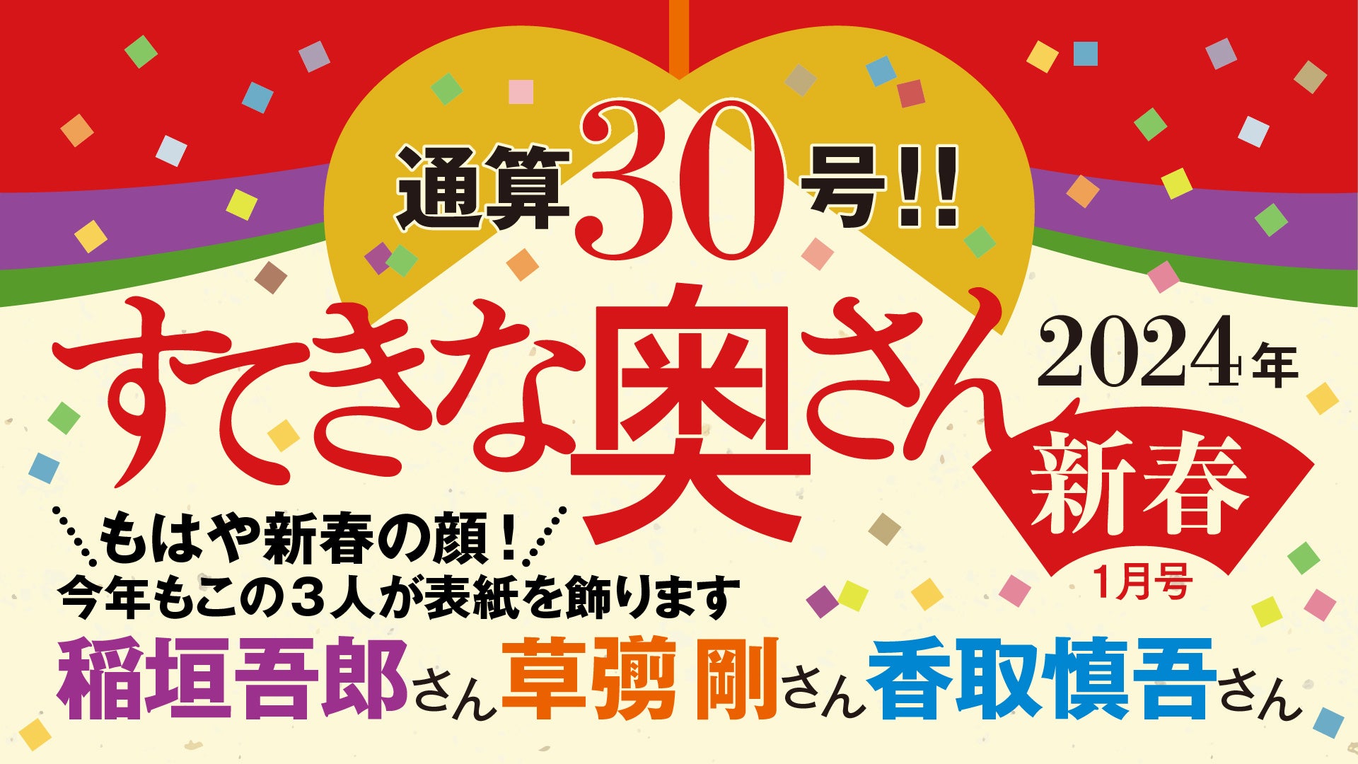 〈もはや年末の風物詩⁉ 今年もこの3人が表紙を飾ります〉稲垣吾郎さん、草彅 剛さん、香取慎吾さん『すてきな奥さん2024年新春1月号』は、おかげさまで通巻30号!