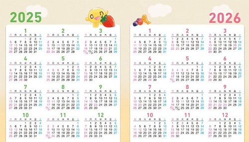 さらに、2025年だけでなく2026年までの2年間を1枚に網羅した年間カレンダーもあり、先々の予定を立てるのに役立つ仕様です。なお、最初の1枚は「2024年12月」。今年の12月から来年の12月までお使いいただけます。